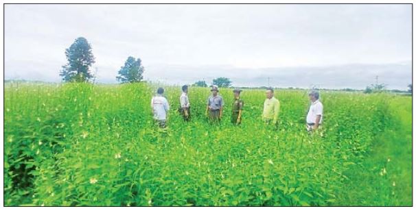 ဆက်လက်၍ နေပြည်တော် ကောင်စီဝင်သည် နှမ်းတောကျေးရွာရှိ တောင်သူများနှင့် တွေ့ဆုံပြီး ပြောင်းနှင့် နှမ်း စိုက်ပျိုးထားရှိမှု အခြေအနေများကို ကြည့်ရှုစစ်ဆေးသည်။