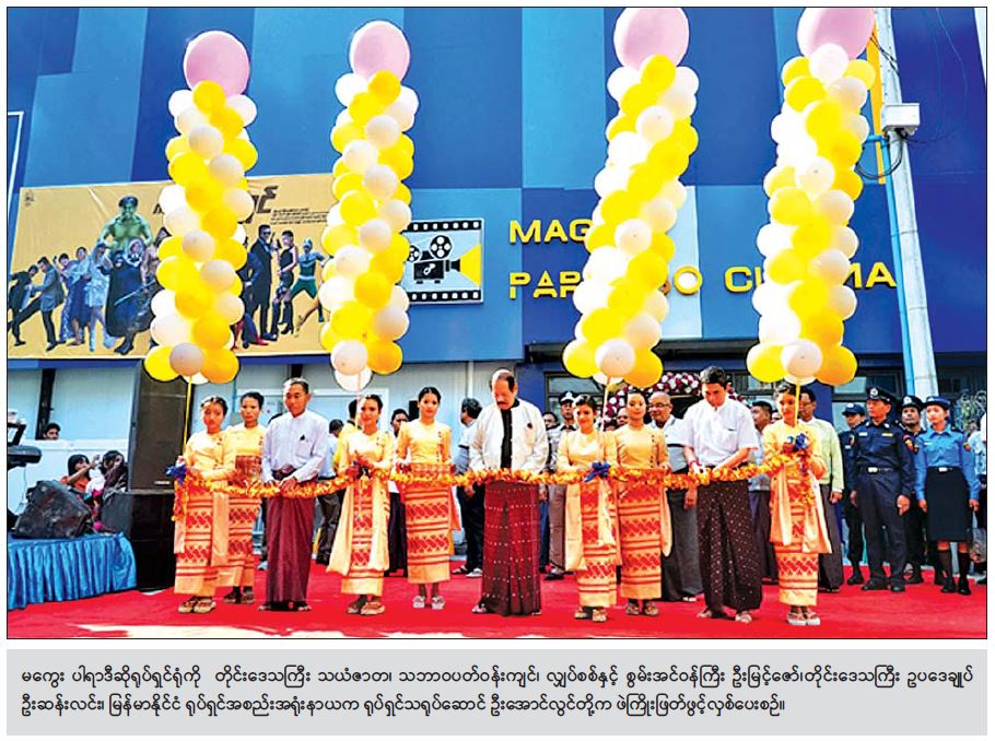 မကွေး ပါရာဒီဆိုရုပ်ရှင်ရုံဖွင့်ပွဲကို ယနေ့နံနက် ၉ နာရီက မကွေးတိုင်းဒေသကြီး မကွေးမြို့ တောင်တွင်းကြီး လမ်းမကြီး အောင်စေတနာ(A) ရပ်ကွက်ရှိ ယင်းရုပ်ရှင်ရုံနေရာတွင် ကျင်းပရာ တိုင်းဒေသကြီး သယံဇာတ၊ သဘာဝပတ်ဝန်းကျင်၊ လျှပ်စစ်နှင့် စွမ်းအင်ဝန်ကြီး ဦးမြင့်ဇော်၊ တိုင်းဒေသကြီး ဥပဒေချုပ် ဦးဆန်းလင်း၊ မြန်မာ နိုင်ငံ ရုပ်ရှင်အစည်းအရုံး နာယက ရုပ်ရှင်သရုပ်ဆောင် ဦးအောင်လွင် တို့က ဖဲကြိုးဖြတ်ဖွင့်လှစ်ပေးကြသည်။