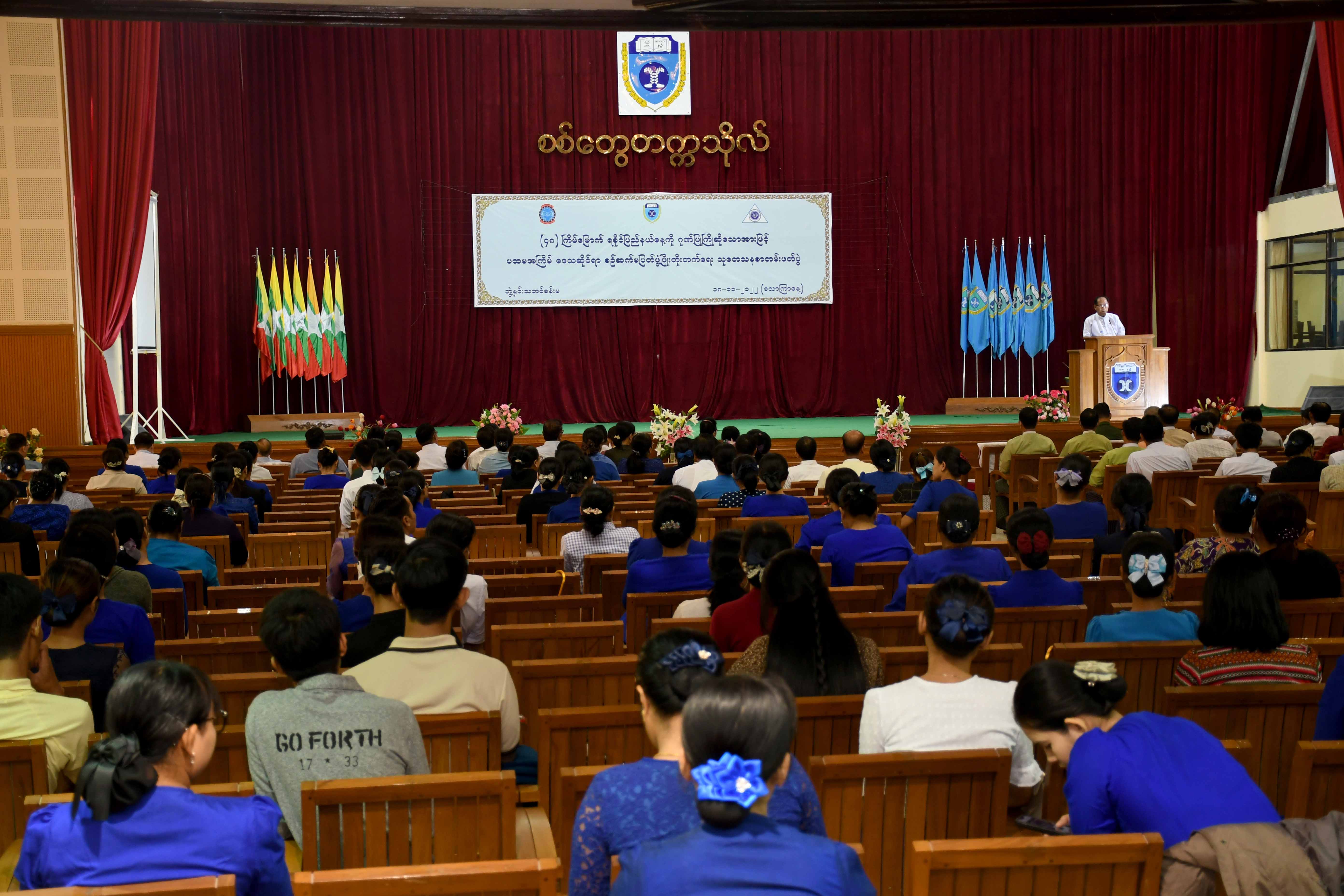 (၄၈) နှစ်မြောက် ရခိုင်ပြည်နယ်နေ့ကို ဂုဏ်ပြုကြိုဆိုသောအားဖြင့် ပထမအကြိမ် ဒေသဆိုင်ရာ စဉ်ဆက်မပြတ်ဖွံ့ဖြိုးတိုးတက်ရေး သုတေသနစာတမ်းဖတ်ပွဲကို ယနေ့နံနက်ပိုင်းက စစ်တွေတက္ကသိုလ် ဘွဲ့နှင်းသဘင်ခန်းမ၌ ကျင်းပရာ ရခိုင်ပြည်နယ်ဝန်ကြီးချုပ် ဒေါက်တာ အောင်ကျော်မင်း၊ ပြည်နယ် တရားလွှတ်တော် တရားသူကြီးချုပ်၊ ပြည်နယ်အစိုးရအဖွဲ့ဝင်များ၊ စစ်တွေတက္ကသိုလ်ပါမောက္ခချုပ်နှင့် တက္ကသိုလ်မှ ဆရာ၊ ဆရာမများ၊ စာတမ်းဖတ်ကြားကြမည့် ပညာရှင်များနှင့် ကျောင်းသား၊ ကျောင်းသူ များတက်ရောက်ကြသည်။