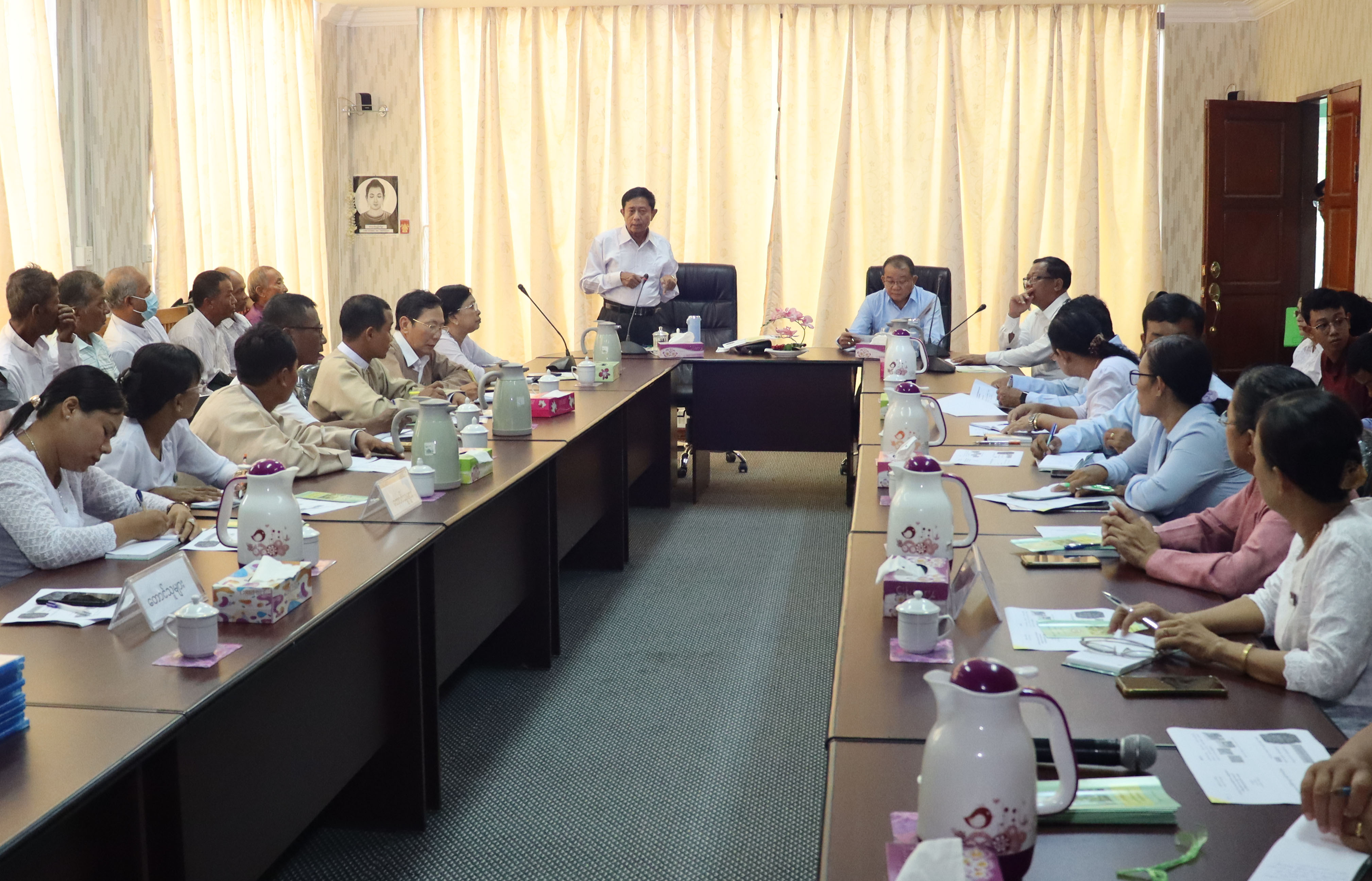 ဆက်လက်၍ ဒုတိယဝန်ကြီး ဦးဗိုလ်ဗိုလ်ကျော် ဝင်ငွေရပြီး စိုက်ပျိုးရေအနည်း ငယ်သာလိုအပ်သည့်သီးနှံများ ပြောင်းလဲစိုက်ပျိုးနိုင်ရေးအတွက် ရေအသုံးချသူများ အဖွဲ့(WUG)များအနေဖြင့် လက်တွေ့ဆန်ဆန် ပူးပေါင်းဆောင်ရွက်ကြရန်နှင့် စိုက်ပျိုး ထုတ်လုပ်မှု ကွင်းဆက်တစ်လျောက်လုံး အင်အားကောင်းသော အစုအဖွဲ့များအဖြစ် လှုပ်ရှား လာကြစေရေး တိုက်တွန်းပါကြောင်း ပြောကြားသည်။