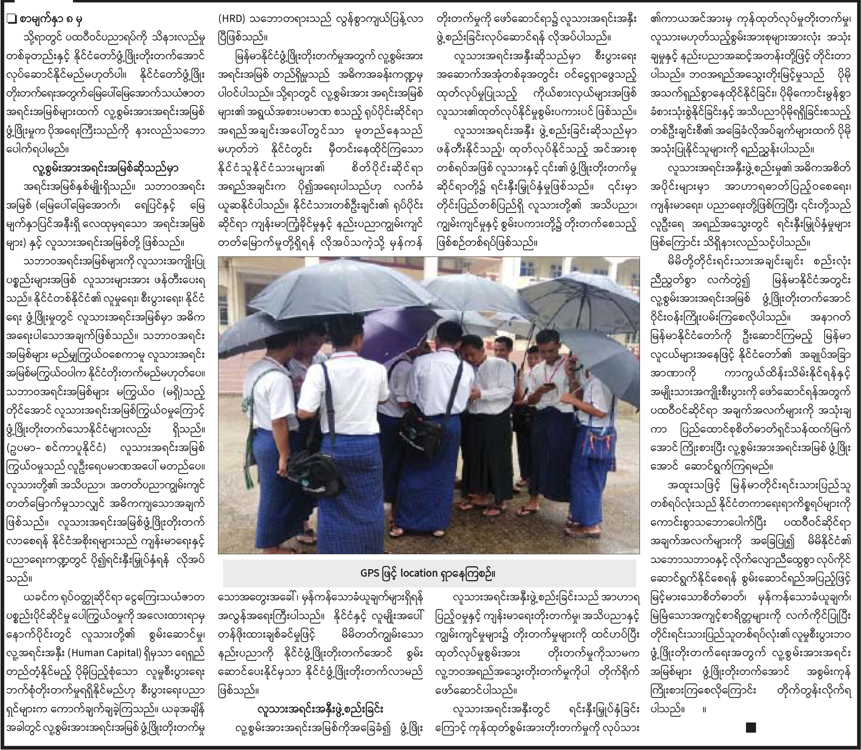 ပထဝီဝင်ပညာရပ်ကိုအခြေခံပြီး လူ့စွမ်းအားအရင်းအမြစ်ကို ဖွံ့ဖြိုးတိုးတက်အောင် ဆောင်ရွက်ခြင်း