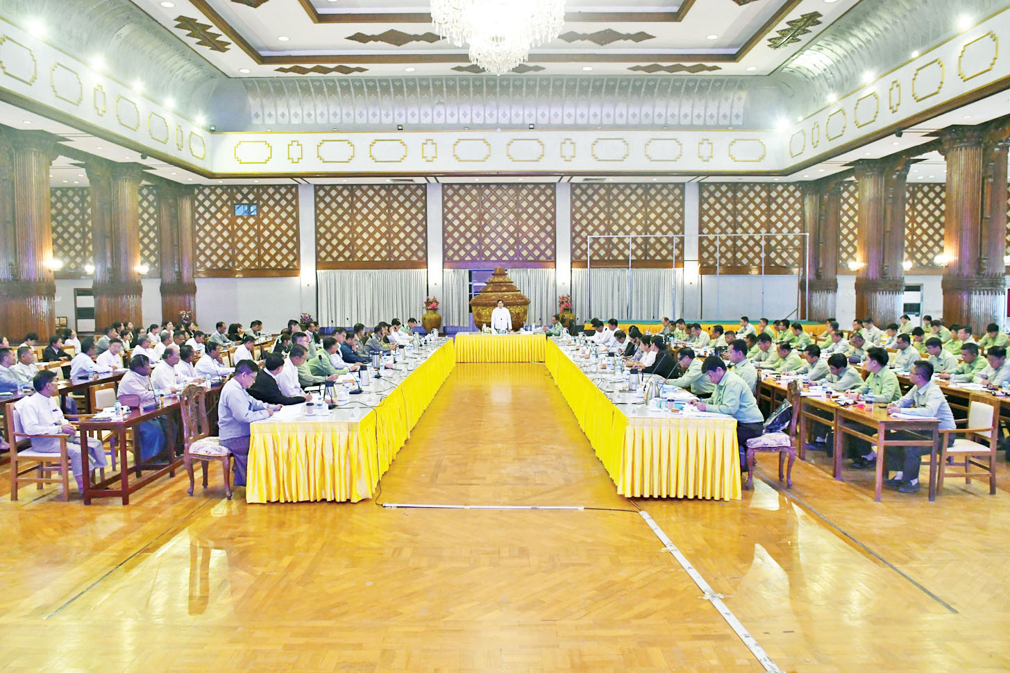 အစည်းအဝေးသို့ ရန်ကုန်တိုင်းဒေသကြီး ဝန်ကြီးချုပ် ဦးစိုးသိန်း၊ ရန်ကုန်တိုင်းစစ်ဌာနချုပ် တိုင်းမှူး ဗိုလ်ချုပ်ပြည့်စုံလင်း၊ ပြည်ထောင်စု ရွေးကောက်ပွဲကော်မရှင် အဖွဲ့ဝင် ဦးအောင်စောဝင်း၊ တိုင်းဒေသကြီးဝန်ကြီးများ၊ ရန်ကုန်တိုင်းဒေသကြီး ရွေးကောက်ပွဲကော်မရှင်အဖွဲ့ခွဲမှ တာဝန်ရှိသူများ၊ တိုင်းဒေသကြီးဌာနဆိုင်ရာများ၊ ခရိုင်/မြို့နယ် စီမံခန့်ခွဲရေးနှင့် အုပ်ချုပ်ရေးကော်မတီဥက္ကဋ္ဌများနှင့် တာဝန်ရှိသူများ၊ ခရိုင်/မြို့နယ် ရွေးကောက်ပွဲ ကော်မရှင်အဖွဲ့ခွဲများမှ တာဝန်ရှိသူများ တက်ရောက်ကြသည်။