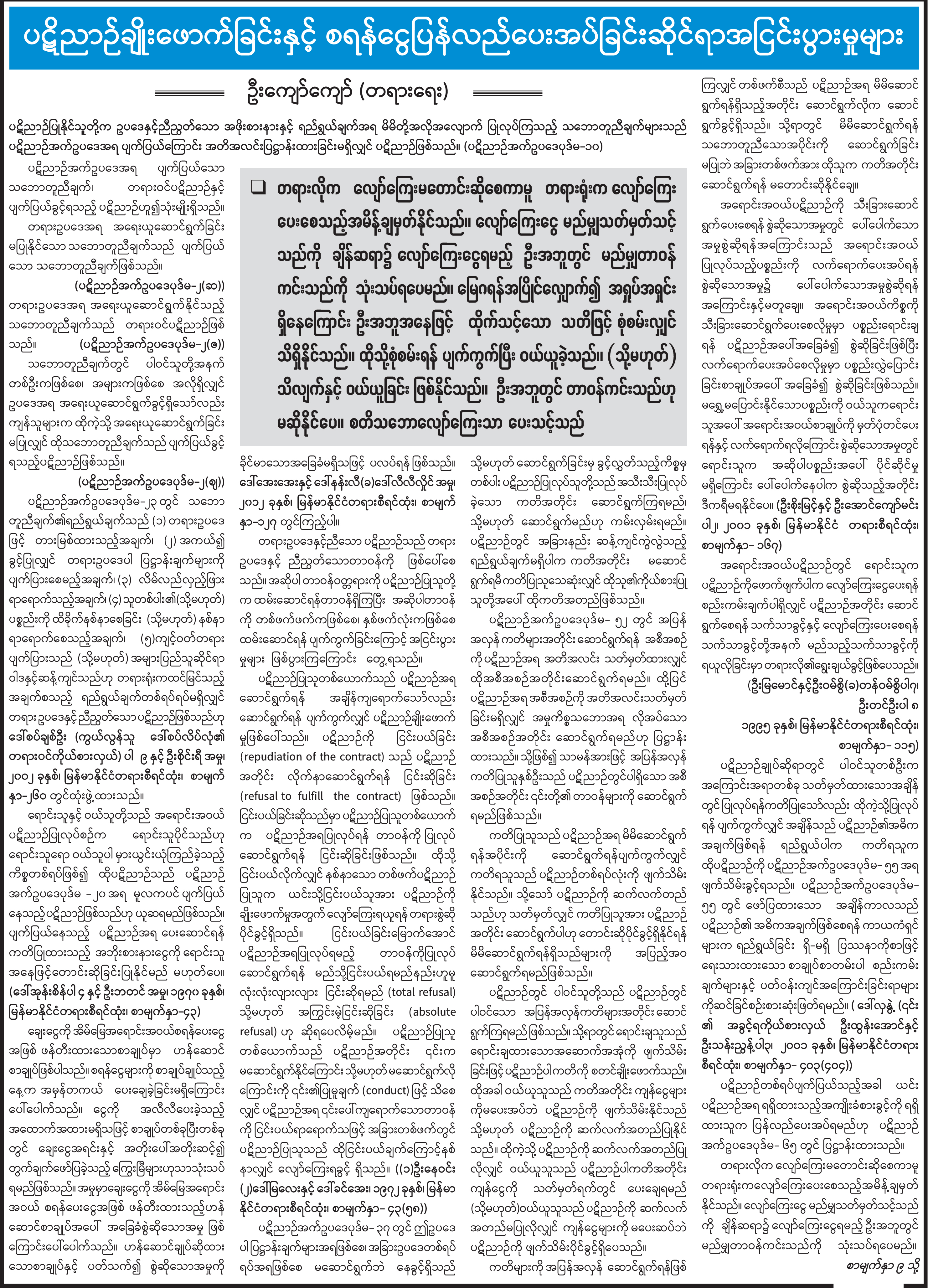 ပဋိညာဉ်ချိုးဖောက်ခြင်းနှင့် စရန်ငွေပြန်လည်ပေးအပ်ခြင်းဆိုင်ရာအငြင်းပွားမှုများ