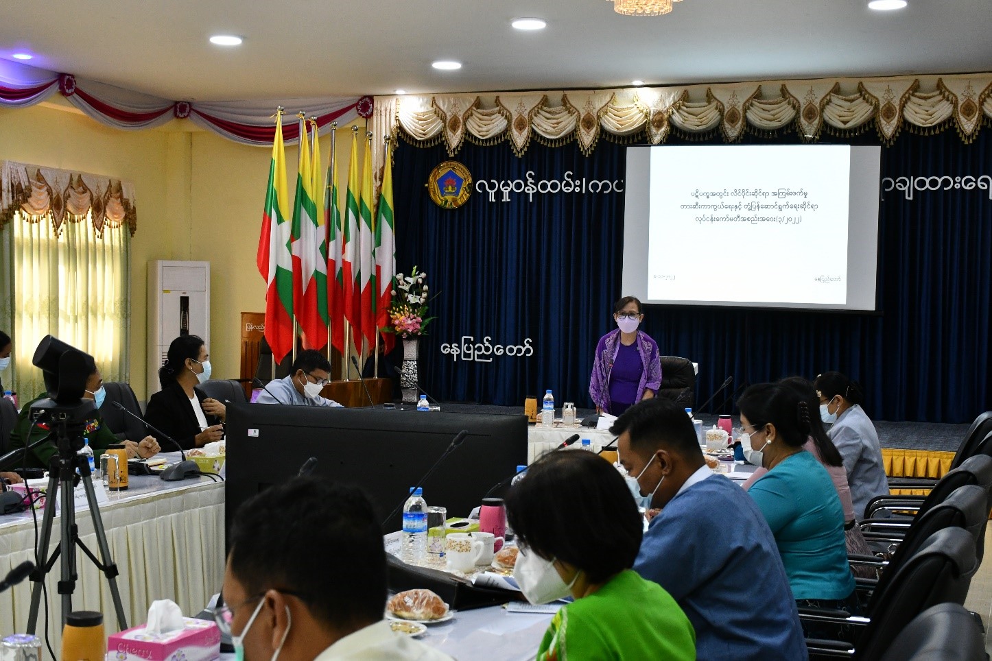 ပဋိပက္ခအတွင်း လိင်ပိုင်းဆိုင်ရာ အကြမ်းဖက်မှုတားဆီးကာကွယ်ရေးနှင့် တုံ့ပြန်ဆောင်ရွက်ရေးဆိုင်ရာ လုပ်ငန်းကော်မတီအစည်းအဝေး (၃/၂၀၂၂) ကို နိုဝင်ဘာ ၈ ရက်က လူမှုဝန်ထမ်း၊ ကယ်ဆယ်ရေးနှင့် ပြန်လည်နေရာချထားရေးဝန်ကြီးဌာန ပြန်လည်ထူထောင်ရေးဦးစီးဌာန၊ အစည်းအဝေးခန်းမ၌ ကျင်းပခဲ့ရာ ပဋိပက္ခအတွင်း လိင်ပိုင်းဆိုင်ရာ အကြမ်းဖက်မှုတားဆီးကာကွယ်ရေးနှင့် တုံ့ပြန်ဆောင်ရွက်ရေးဆိုင်ရာ လုပ်ငန်းကော်မတီဥက္ကဋ္ဌ၊ လူမှုဝန်ထမ်းဦးစီးဌာန ညွှန်ကြားရေးမှူးချုပ် ဒေါက်တာစန်းစန်းအေးနှင့် ဝန်ကြီးဌာန/အဖွဲ့အစည်းများမှ လုပ်ငန်းကော်မတီဝင်များ တက်ရောက်ခဲ့ကြသည်။