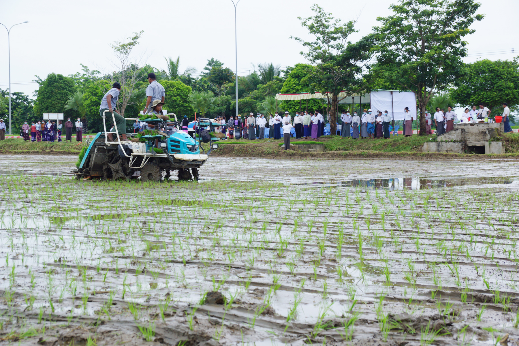 နေပြည်တော်၊ ပုဗ္ဗသီရိမြို့နယ်၊ ညောင်ပင်ကြီးစုကျေးရွာအုပ်စု၊ နေပြည်တော်ကောင်စီ လမ်းဘေးရှိ ဧက ၅၀၀ ကွင်း၊ ကွင်းအမှတ်(၁၆၃၆ က) တောင်သူ ဦးတင်ထွန်းအပိုင် လယ် ငါးဧကတွင် စက်မှုလယ်ယာ ဦးစီးဌာနနှင့် စိုက်ပျိုးရေးဦးစီးဌာနတို့ ပူပေါင်းဆောင်ရွက်သည့် ကောက်စိုက်စက်ဖြင့် မိုးစပါး စိုက်ပျိုးခြင်း သရုပ်ပြပွဲကို ဩဂုတ် ၁၆ ရက် နံနက်ပိုင်းက ကျင်းပခဲ့သည်။