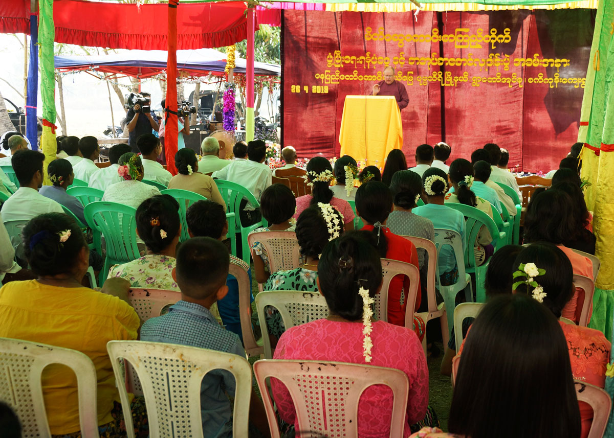 အခမ်းအနားတွင် စာရေးဆရာ ဦးဝေလွင်(ဝေလွင်မောင်)က နှုတ်ခွန်းဆက် အမှာစကား ပြောကြားရာ ပြည်သူများ အနေဖြင့် ဗဟုသုတ တိုးပွားစေရန်အတွက် စာအုပ်စာပေကို ဖတ်ရှုကြရန် လိုအပ်ကြောင်း ရှင်းလင်းပြောကြားခဲ့ပြီး အမေရိကန်နိုင်ငံသား Mr.Richard Dare (PHD) Professor and co-founder international leadership university  က အဖွင့်အမှာစ ကားပြောကြားခဲ့သည်။ ထို့နောက် စာကြည့်တိုက်ဖွံ့ဖြိုးရေးအလှူရှင် စာရေးဆရာဦးဝေလွင် (ဝေလွင်မောင်)က စာကြည့်တိုက်ဖွံ့ဖြိုးရေး အလှူငွေ ကျပ်(၁၀)သိန်းနှင့် သုတ ရသစာအုပ် ၆၅၀ အုပ်ကို လှူဒါန်းပေးအပ်ရာ စက်ကုန်းကျေးရွာ အငြိမ်းစား ကျောင်းအုပ်ဆရာကြီး ဦးသိန်းဇော်မှ လက်ခံရယူခဲ့ပြီး ဂုဏ်ပြုမှတ်တမ်းလွှာအား ပြန်လည်ပေးအပ်ခဲ့သည်။
