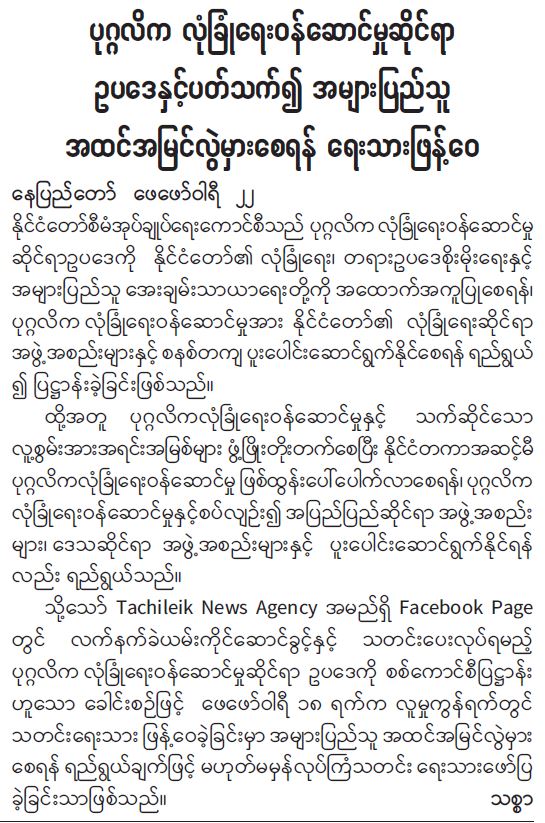 ပုဂ္ဂလိက လုံခြုံရေးဝန်ဆောင်မှုဆိုင်ရာဥပဒေနှင့် ပတ်သက်၍ အများပြည်သူ အထင်အမြင်လွဲမှားစေရန် ရေးသားဖြန့်ဝေ
