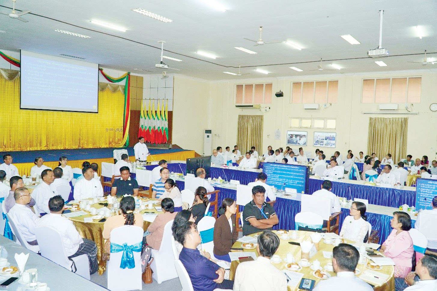 အစည်းအဝေးသို့ စက်မှုဝန်ကြီးဌာန ပြည်ထောင်စုဝန်ကြီး ဒေါက်တာချာလီသန်း၊ ဗဟိုဘဏ်အဖွဲ့ဝင် စီးပွားရေးပညာရှင် ဒေါက်တာဇော်ဦး၊ စက်မှုဝန်ကြီးဌာနမှ ညွှန်ကြားရေးမှူးချုပ်၊ ဦးဆောင်ညွှန်ကြားရေးမှူးများ၊ ဒုတိယအမြဲတမ်းအတွင်းဝန်၊ ဒုတိယညွှန်ကြားရေးမှူးချုပ်များ၊ အထွေထွေမန်နေဂျာများ၊ စက်မှုဝန်ကြီးဌာနမှ ပုဂ္ဂလိကသို့ ငှားရမ်းထားသည့်စက်ရုံများမှ တာဝန်ရှိသူများ၊ စက်မှုဝန်ကြီးဌာနမှတာဝန်ရှိသူများ တက်ရောက်သည်။