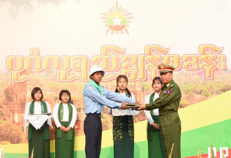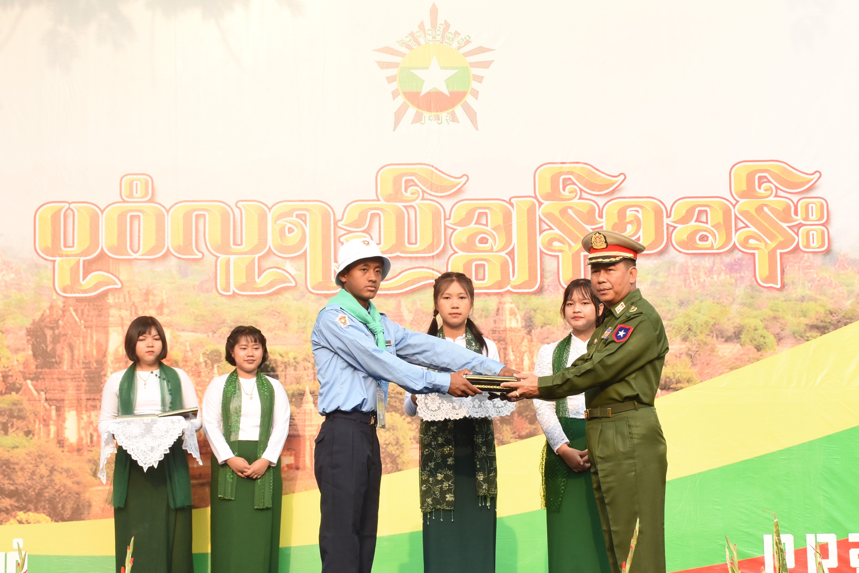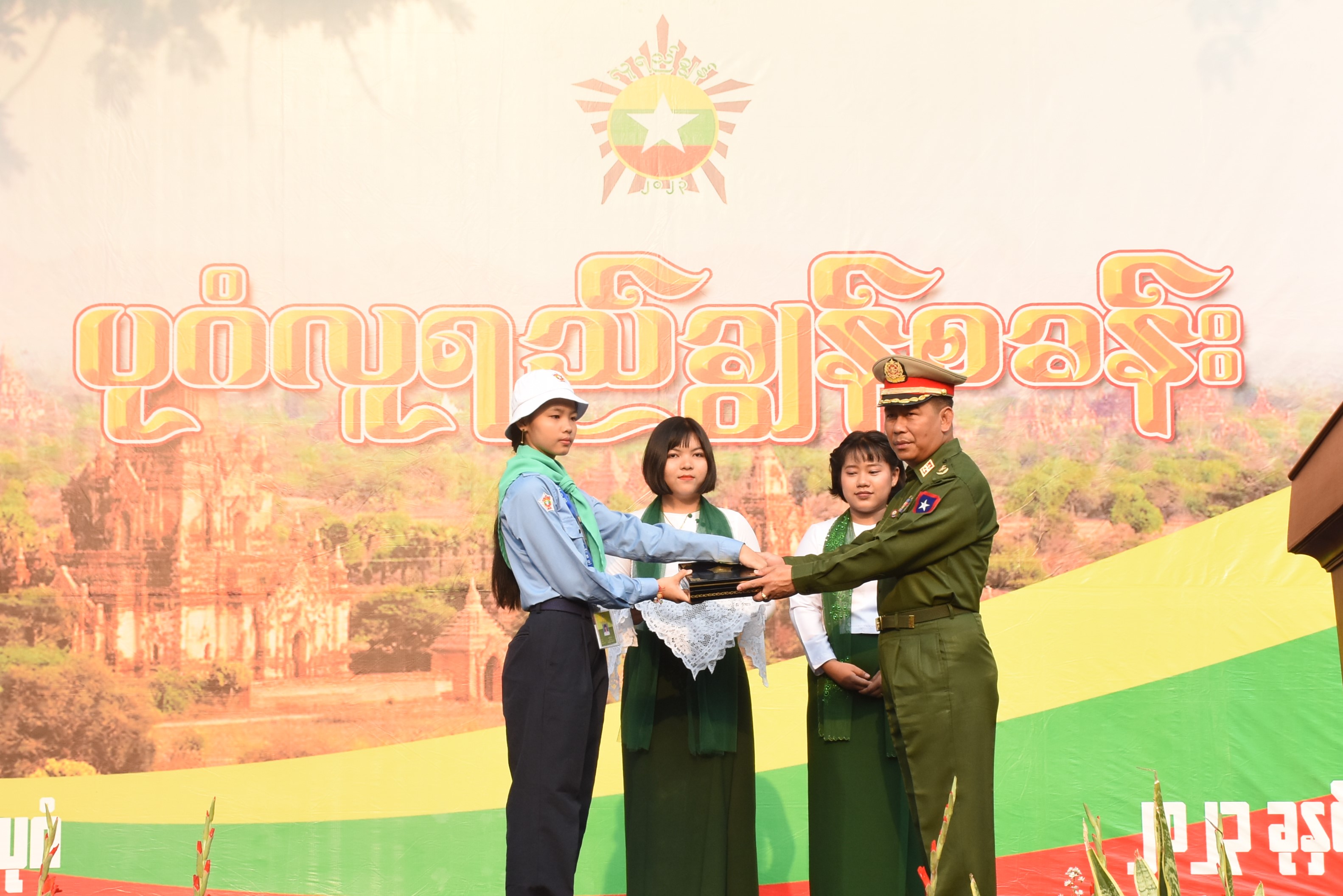 ဦးစွာ ပုဂံလူရည်ချွန်စခန်းအား လူရည်ချွန်ကျောင်းသား ကျောင်းသူတို့က ဖဲကြိုးဖြတ်ဖွင့်လှစ်ပေးပြီး စုပေါင်းမှတ်တမ်းတင် ဓာတ်ပုံရိုက်ကြသည်။
