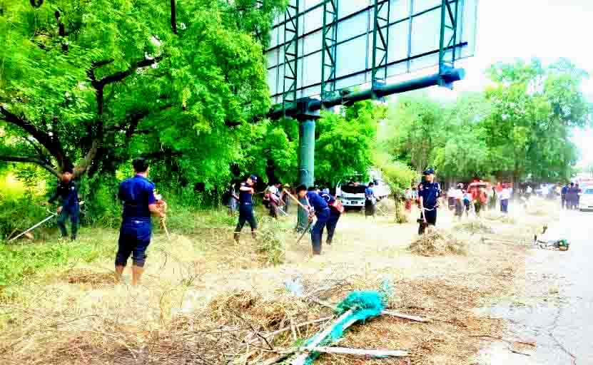 အဆိုပါ ပြည်သူ့အကျိုးပြု စုပေါင်းသန့်ရှင်းရေးလုပ်ငန်းများ ဆောင်ရွက်ရာ၌ ညောင်ဦးခရိုင် စီမံအုပ်ချုပ်ရေးအဖွဲ့ ဥက္ကဋ္ဌ ဦးတိုးလွင်၊ မြို့နယ်စီမံအုပ်ချုပ်ရေးအဖွဲ့ ဥက္ကဋ္ဌ ဦးနန်းတင့်တို့၏ ဦးဆောင်မှုဖြင့် ခရိုင်နှင့် မြို့နယ် စီမံအုပ်ချုပ်ရေး အဖွဲ့ဝင်များ၊ ဌာနဆိုင်ရာများ၊ အရန်မီးသတ်တပ်ဖွဲ့ဝင်များ၊ ဒေသခံပြည်သူများ စုစုပေါင်း အင်အား ၁၅၀ ခန့်ဖြင့် လေယာဉ်ကွင်းသွားရာလမ်းတစ်လျှောက် လမ်းဘေး(ဝဲ/ယာ)ရှိ ပေါင်းမြက်များနှင့် ခြုံနွယ်ပိတ်ပေါင်းများ ခုတ်ထွင်ရှင်းလင်းခြင်း၊ စွန့်ပစ်အမှိုက်များ ကောက်ယူရှင်းလင်းခြင်း၊ တံမြက်စည်းလှဲခြင်း လုပ်ငန်းများကို အမှိုက်သိမ်းယာဉ်ဖြင့် စနစ်တကျ စုပေါင်းသန့်ရှင်းရေး ပြုလုပ်ဆောင်ရွက်ခဲ့ကြသည်။
