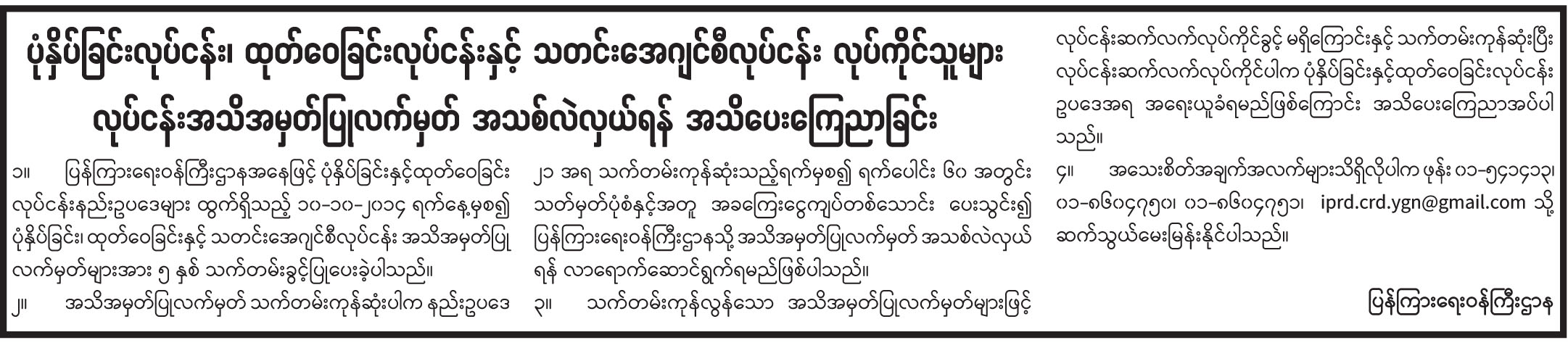 ပုံနှိပ်ခြင်းလုပ်ငန်း၊ ထုတ်ဝေခြင်းလုပ်ငန်းနှင့် သတင်းအေဂျင်စီလုပ်ငန်း လုပ်ကိုင်သူများ လုပ်ငန်းအသိအမှတ်ပြုလက်မှတ် အသစ်လဲလှယ်ရန် အသိပေးကြေညာခြင်း