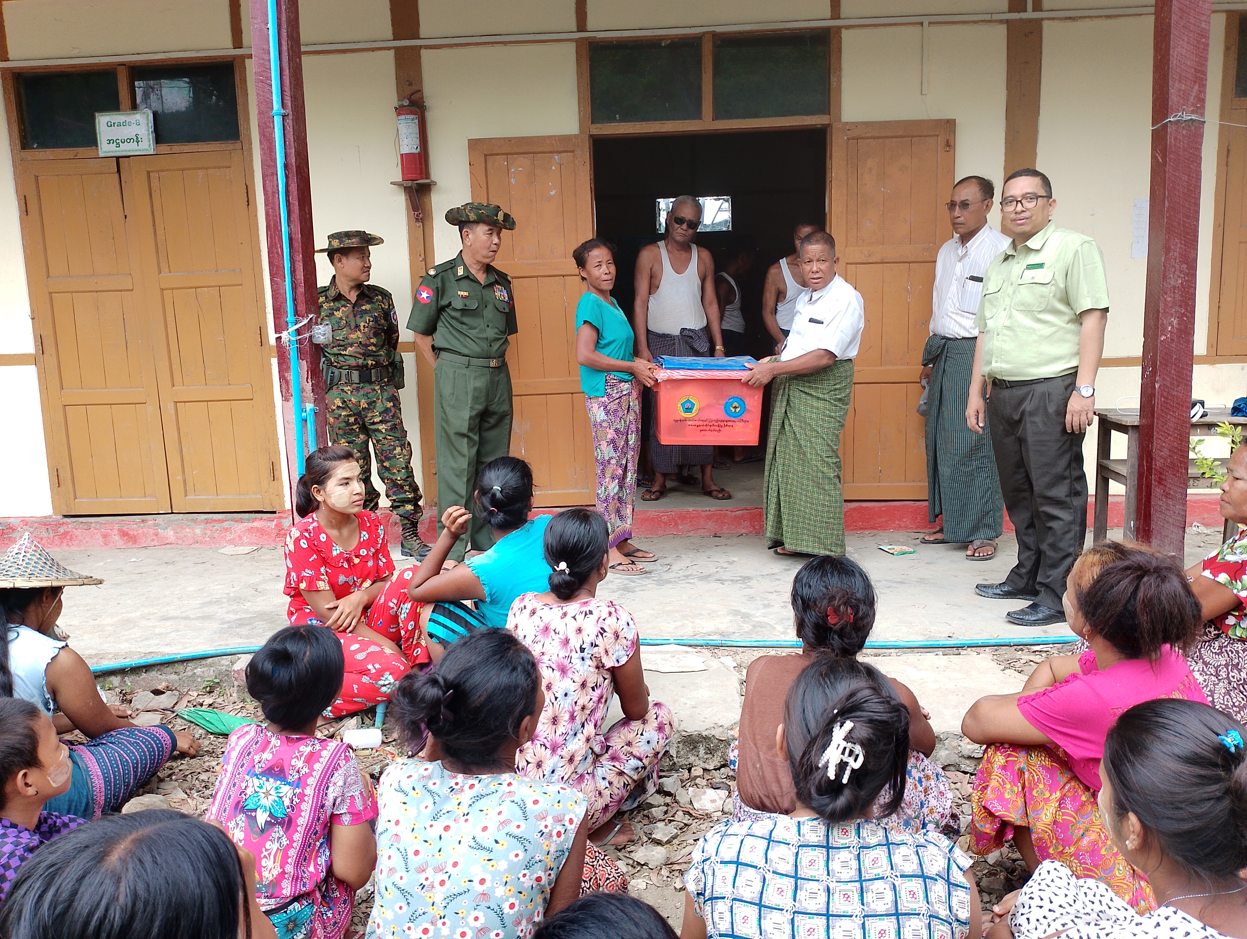 ထိုသို့ထောက်ပံ့ပေးအပ်ရာတွင် ရခိုင်ပြည်နယ်အစိုးရအဖွဲ့မှ လှူဒါန်းသည့် စားနပ်ရိက္ခာ ဆန်နှင့်စားဆီ၊ ခေါက်ဆွဲခြောက်၊ ငါးစည်ဘူး၊ အိမ်မိုးသွပ်ပြား၊ မိုးသံ၊ စောင်၊ တာပေါ်လင်စနှင့် အဝတ်အထည်များ စသည့် ကယ်ဆယ်ရေးပစ္စည်း (၁၄)မျိုးတို့ကို မုန်တိုင်းဒဏ်သင့် ကျေးရွာအုပ်စုများသို့ စနစ်တကျ ဖြန့်ဝေပေးထောက်ပံ့ပေးခဲ့သည်။