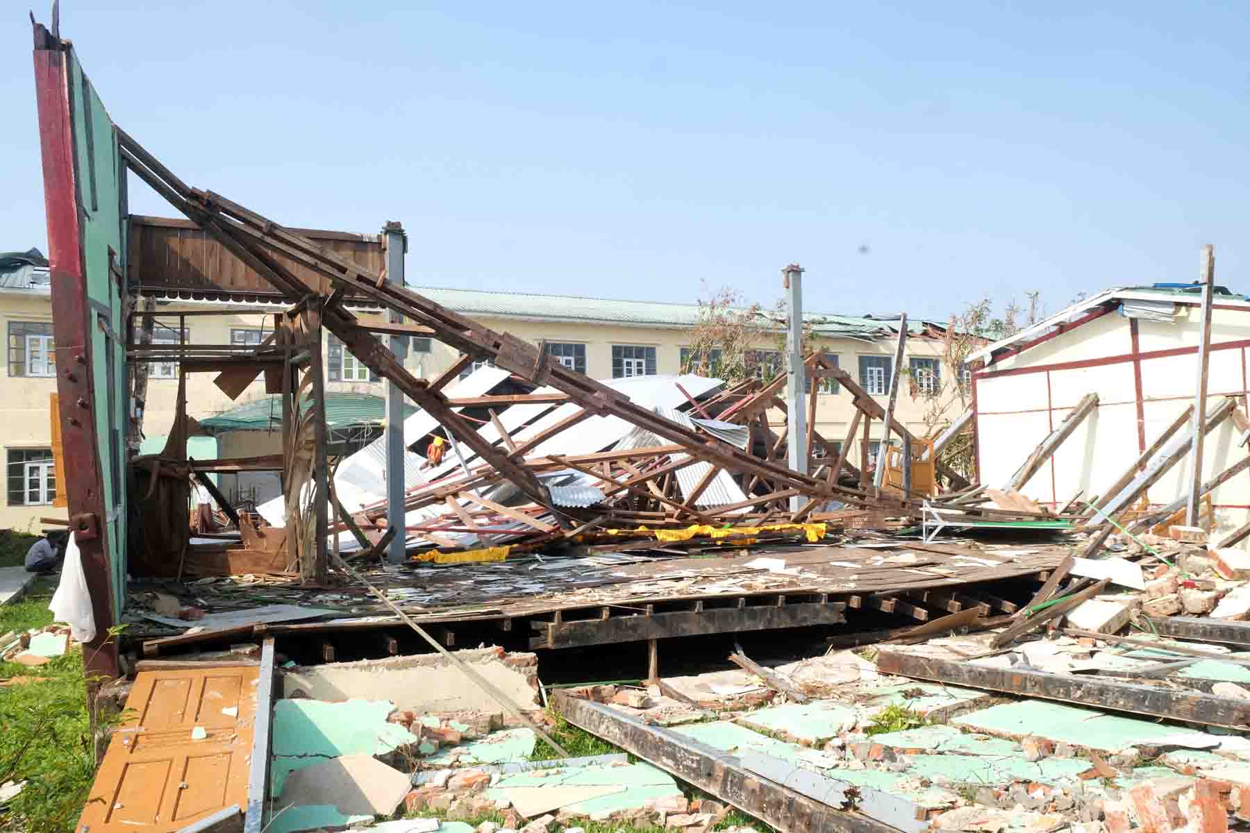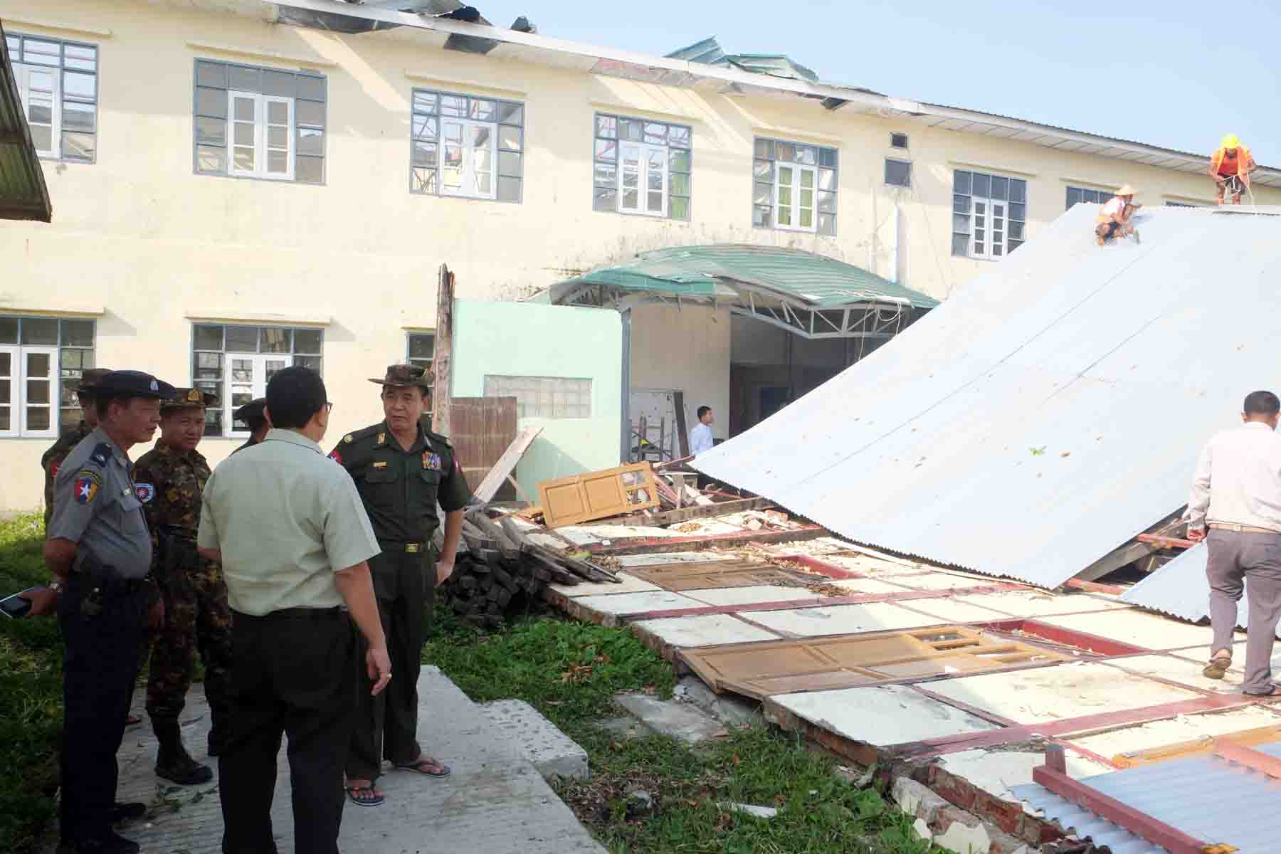 ရခိုင်ပြည်နယ်၊ ပုဏ္ဏားကျွန်းမြို့နယ်တွင် မိုခါဆိုင်ကလုန်းမုန်တိုင်းကြောင့် ထိခိုက်ပျက်စီးဆုံးရှုံးခဲ့သည့် စာသင်ကျောင်းများအား ပြန်လည်ထူထောင်ရေးအတွက် ဗိုလ်မှူးချုပ်ဝင်းမောင်သည် မြို့နယ်စီမံအုပ်ချုပ်ရေးအဖွဲ့ ဥက္ကဋ္ဌနှင့်တာဝန်ရှိသူများ လိုက်ပါ၍ မေ ၂၂ ရက် နံနက်ပိုင်းက ပုဏ္ဏားကျွန်းမြို့ပေါ်ရှိ စာသင်ကျောင်းများအား ကွင်းဆင်းစစ်ဆေးသည်။