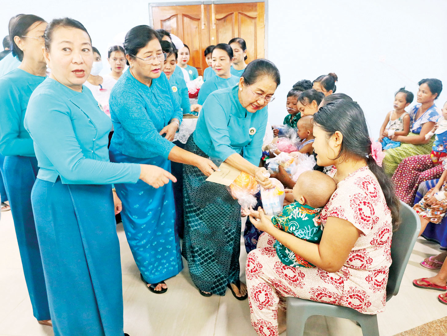 မြန်မာနိုင်ငံ အမျိုးသမီးရေးရာအဖွဲ့ချုပ်ဥက္ကဋ္ဌ ဒေါက်တာသက်သက်ဇင်နှင့် တာဝန်ရှိသူများသည် ယနေ့နံနက်ပိုင်းက ပုသိမ်မြို့သို့ ရောက်ရှိပြီး ဧရာဝတီတိုင်းဒေသကြီး အမျိုးသမီးရေးရာအဖွဲ့ နာယက၊ အဖွဲ့ဝင်များနှင့်အတူ ပုသိမ်ခရိုင် ပြည်သူ့ဆေးရုံကြီးတွင် ခွဲစိတ်ကုသနေသည့် နှုတ်ခမ်းကွဲ၊ အာခေါင်ကွဲ ကလေးလူနာ ၆၄ ဦးအား ထောက်ပံ့ပစ္စည်းများနှင့် အလှူငွေတစ်ဦးလျှင် ငွေကျပ် ၅၀၀၀၀ ပေးအပ်လှူဒါန်းကြပြီး အားပေးစကား ပြောကြားသည်။