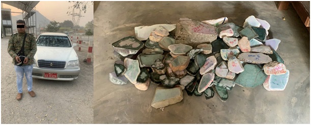 မန္တလေးတိုင်းဒေသကြီး၊ ပုသိမ်ကြီးမြို့နယ်၊ (၁၆) မိုင်စစ်ရေးစခန်း၌ ယမန်နေ့ နံနက် ၆ နာရီ ၁၅ မိနစ်က ရဲတပ်ဖွဲ့ဝင်များ ပါဝင်သော ပူးပေါင်းအဖွဲ့က သက်သေများနှင့်အတူ စစ်ဆေးရှာဖွေခြင်း လုပ်ငန်းများ ဆောင်ရွက်နေစဉ် တရားမဝင် သယ်ဆောင်လာသော ကျောက်စိမ်းတုံး ခွဲခြမ်းများ ဖမ်းဆီးရမိခဲ့ကြောင်း သိရသည်။