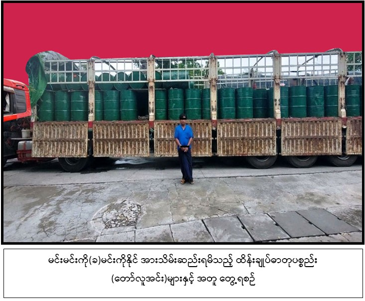 အကောက်ခွန်ဦးစီးဌာနမှ အဖွဲ့ဝင်များပါဝင်သော ပူးပေါင်းအဖွဲ့သည် ဩဂုတ် ၂၆ ရက် ည ၇ နာရီတွင် ပုသိမ်ကြီးမြို့နယ်၊ အုန်းချောကျေးရွာအနီးရှိ ထုံးဘို - မြစ်ငယ်သွားကားလမ်း၊ မိုင်တိုင် အမှတ် (၆/၄) တွင် မင်းမင်းကို (ခ) မင်းကိုနိုင် မောင်းနှင်လာသည့် Nissan အမျိုးအစား မော်တော်ယာဉ်ကို ရပ်တန့်စစ်ဆေးရှာဖွေရာ ငွေကျပ် ၂,၇၄၄ သိန်းတန်ဖိုးရှိ ထိန်းချုပ်ဓာတုပစ္စည်း (တော်လူအင်း) ၁၉,၆၀၀ လီတာ ကို သိမ်းဆည်းရမိခဲ့သည်။