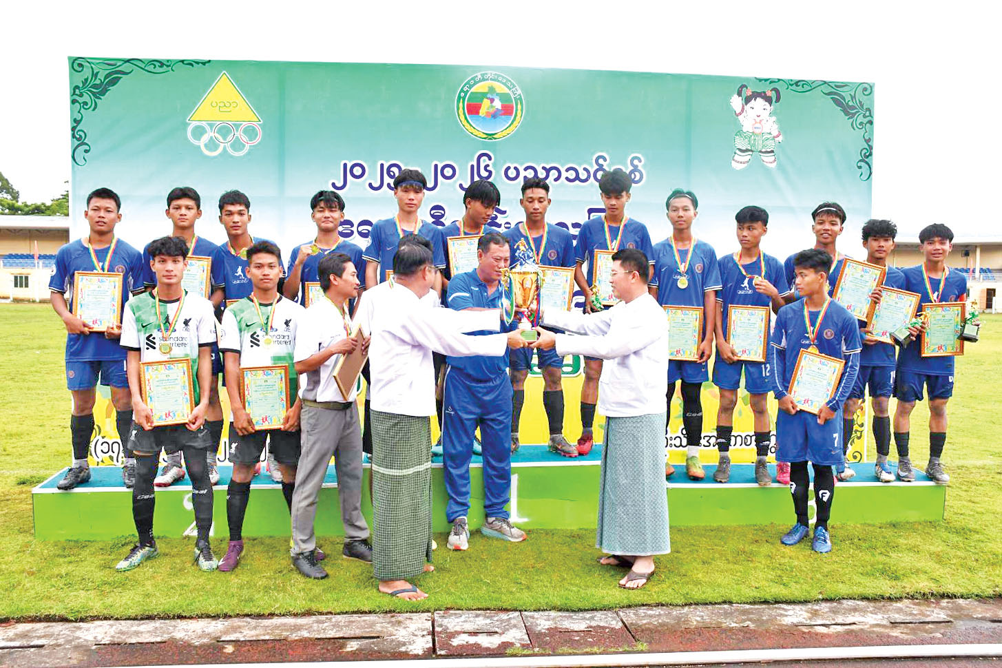 ထို့နောက် ဧရာဝတီတိုင်းဒေသကြီး အခြေခံပညာကျောင်းသားအားကစားပွဲတော် အမျိုးသမီးဘောလုံးပြိုင်ပွဲတွင် ပထမဆုရရှိသည့် ပုသိမ်ခရိုင်အသင်းအား တစ်ဦးချင်းဆုတံဆိပ်များ၊ ဂုဏ်ပြုမှတ်တမ်းလွှာများနှင့် တံခွန်စိုက်ဆုဖလားကို ချီးမြှင့် သည်။