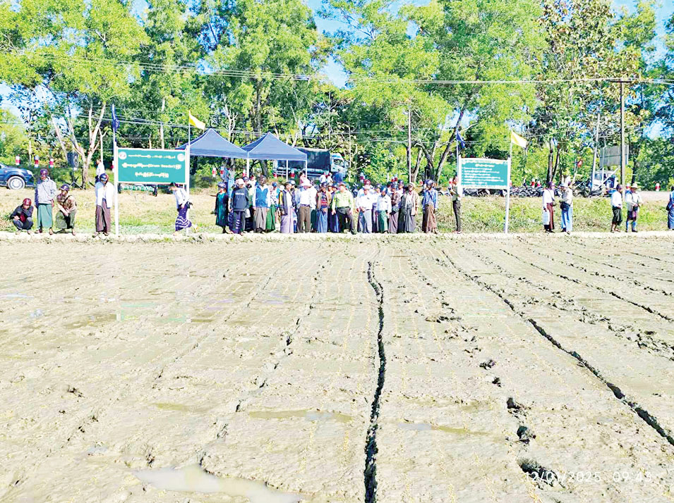 ဧရာဝတီတိုင်းဒေသကြီး ပုသိမ်မြို့ အမှတ် (၁) ရပ်ကွက် ကြိုးတံတားအနီးရှိ တောင်သူ ဦးသန်းထွန်း၏ လယ်မြေခြောက်ဧကတွင် ရေဆင်းပေါ်ဆန်း (၂) စပါးမျိုးအား မျိုးစေ့ချကိရိယာ (Drum Seeder) ဖြင့် စိုက်ပျိုးပွဲကို ယနေ့နံနက်ပိုင်းက ကျင်းပရာ ခရိုင်စီမံခန့်ခွဲရေးနှင့် အုပ်ချုပ်ရေးကော်မတီဥက္ကဋ္ဌနှင့် ခရိုင်စိုက်တိုးမြှင့်အဖွဲ့ဝင်များ၊ မြို့နယ်စီမံခန့်ခွဲရေးနှင့် အုပ်ချုပ်ရေးကော်မတီဥက္ကဋ္ဌနှင့် မြို့နယ် စိုက်တိုးမြှင့်အဖွဲ့ဝင်များ၊ တောင်သူများ တက်ရောက်ကြသည်။