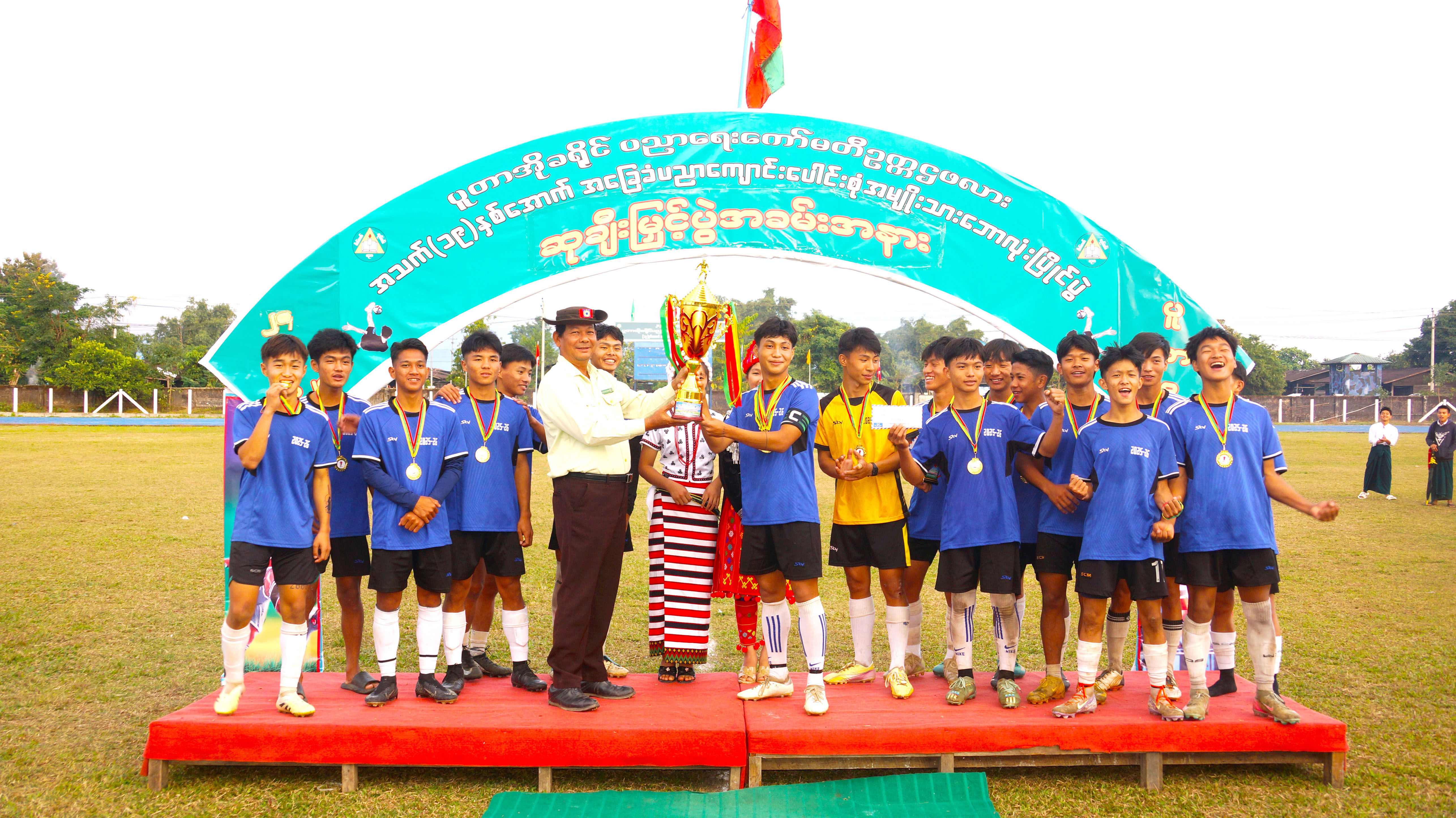 ဆက်လက်၍ ဒုတိယခရိုင်အုပ်ချုပ်ရေးမှူး ဦးသန်းထွေးနှင့် တာဝန်ရှိသူများက ပွဲစဉ်တစ်လျှောက် အကောင်းဆုံး အားကစားသမားဆု၊ ဂိုးသွင်းအများဆုံးဆု၊ ရှေ့တန်းအကောင်းဆုံး ကစားသမားဆု၊ အလယ်တန်း အကောင်းဆုံးကစားသမားဆု၊ ဂိုးသမားအကောင်းဆုံးဆု၊ တတိယဆုနှင့် တစ်ဦးချင်း လည်ဆွဲတံဆိပ်များ၊ ဒုတိယဆု၊ ပထမဆု၊ ဆုဖလားဆွတ်ခူးရရှိသော အထက(ပူတာအို) ဘောလုံးအသင်းအား ဆုဖလားနှင့်ဆုများ ပေးအပ်ချီးမြှင့်ကြသည်။