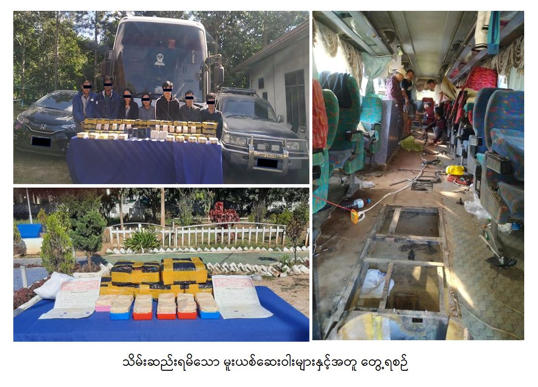 စစ်ဆေးဖော်ထုတ်ချက်အရ သိမ်းဆည်းရမိသည့် မူးယစ်ဆေးဝါးများကို ရှမ်းပြည်နယ်(တောင်ပိုင်း) နမ့်စန်မြို့မှ မန္တလေးသို့ သယ်ဆောင်ရာတွင် ရှေ့ပြေးယာဉ်အဖြစ် ဝယ်ယူသယ်ဆောင်လာသူ အောင်ကျော်ဆန်း မောင်းနှင်ပြီး ဇနီး မတင်ဆန်းဝင်း၊ ကျော်လှိုင်ဘွားတို့ လိုက်ပါလာသည့် Honda Fit အမျိုးအစား မော်တော်ယာဉ်ဖြင့် လည်းကောင်း၊ အောင်အောင် မောင်းနှင်ပြီး သန့်ဇင်ကျော် လိုက်ပါလာသည့် Landcruiser အမျိုးအစား မော်တော်ယာဉ်ဖြင့် လည်းကောင်း ကြိုတင်မောင်းနှင်သွားကြောင်း သိရှိရသဖြင့် အဆိုပါ မော်တော်ယာဉ် နှစ်စီးအား နံနက် ၃ နာရီခွဲတွင် ရွာငံမြို့နယ်၊ မြို့ကြီးကျေးရွာအနီးတွင် ဖမ်းဆီးရမိခဲ့ကြောင်း၊ ကွင်းဆက်အရ ဒီဇင်ဘာ ၁ ရက် နံနက် ၉ နာရီခွဲခန့်တွင် ဖမ်းဆီးရမိသော မူးယစ်ဆေးဝါးများအား ရောင်းချသယ်ဆောင်ခိုင်းသူ သီဟဦး(ခ)အကြွင်း ငှားရမ်းနေထိုင်သည့် နမ့်စန်မြို့နယ်၊ ဝမ်ပုံကျေးရွာအုပ်စု၊ မီးသွေးကုန်းကျေးရွာရှိ နေအိမ်ကို ဝင်ရောက်ရှာဖွေရာ သီဟဦး(ခ)အကြွင်းမှာ ထွက်ပြေးတိမ်းရှောင်လျက်ရှိပြီး နေအိမ်အိပ်ခန်းအတွင်းမှ ဘိန်းဖြူ သုည ဒသမ ၆၆ ကီလို သိမ်းဆည်းရမိခဲ့သဖြင့် ကျော်ဆန်းဝင်း(ခ)အောင်ဆန်းဝင်း(ခ)ယက္ခ၊ မျိုးမင်းအောင်(ခ)ကုလား ၊ မတင်ဆန်းဝင်း(ခ)မငယ်၊ အောင်ကျော်ဆန်း၊ ကျော်လှိုင်ဘွား(ခ)ကျော်ကြီး(ခ)ဝမ်းဝမ်း၊ အောင်အောင်(ခ)အောင်ကျော်ဦး၊ သန့်ဇင်ကျော်၊ သီဟဦး(ခ)အကြွင်း (ဖမ်းမမိ) တို့အား ဥပဒေအရ အမှုဖွင့်အရေးယူထားရှိကြောင်း သိရသည်။