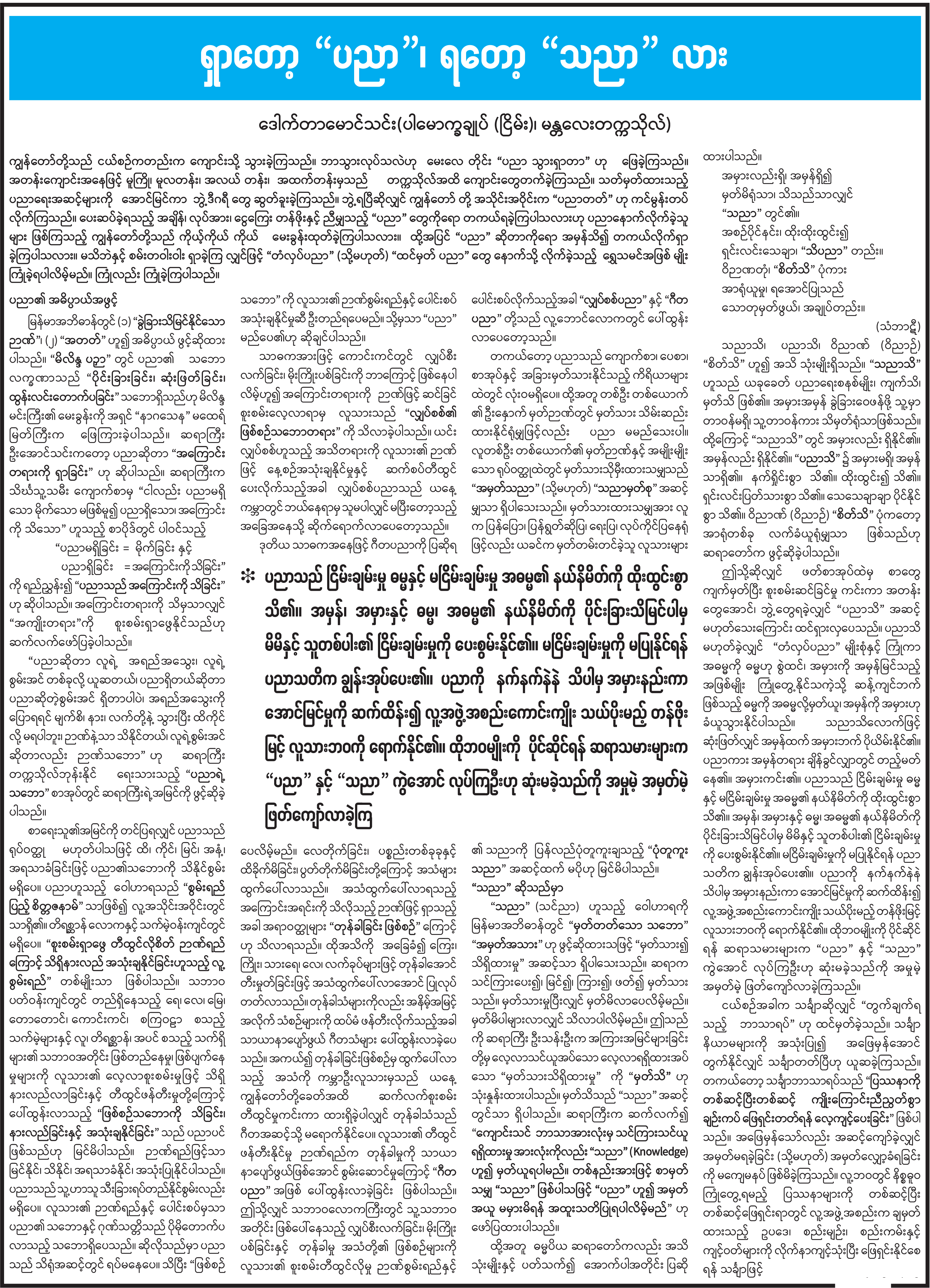 ရှာတော့ “ပညာ” ရတော့ “သညာ” လား