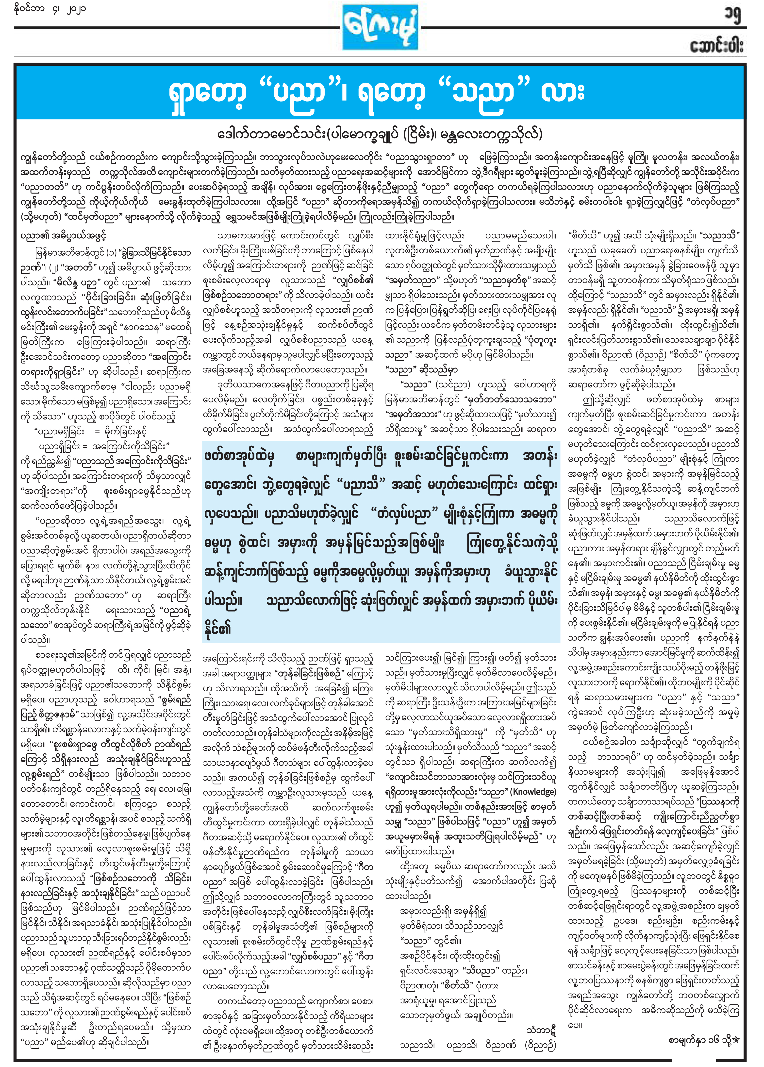 ရှာတော့ “ပညာ”၊ ရတော့ “သညာ” လား