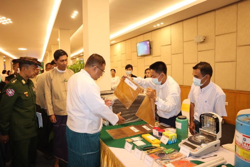ယင်းနောက် ပြည်နယ်ဝန်ကြီးချုပ်က ရော်ဘာအထွက်နှုန်း တိုးတက်ရေးမြင့်မားရေးအတွက် သုတေသန လုပ်ငန်းများ၏ စာတမ်းပြုစုသူများကို ဂုဏ်ပြုမှတ်တမ်းလွှာများပေးအပ်၍ အဆင့်မြင့်ရော်ဘာ ထုတ်ကုန်များနှင့် ရော်ဘာမျိုးသန့် ဖူးဆက်ပျိုးပင်များ စိုက်ပျိုးပြသထားရှိမှုတို့ကို ကြည့်ရှုအားပေးသည်။