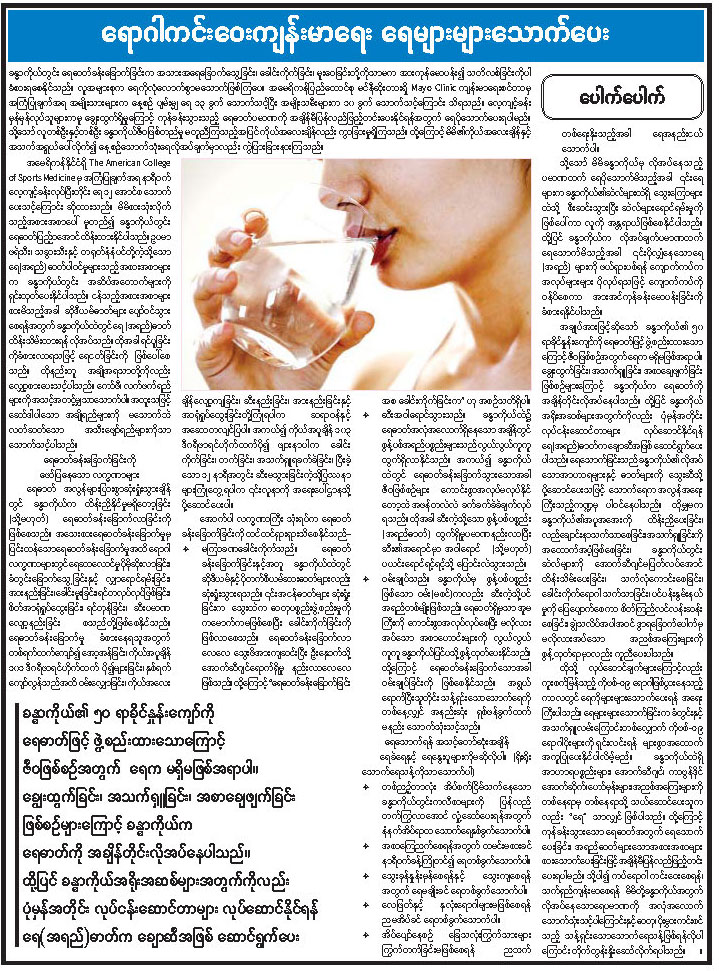 ရောဂါကင်းဝေးကျန်းမာရေး ရေများများသောက်ပေး