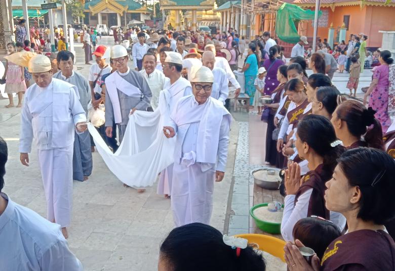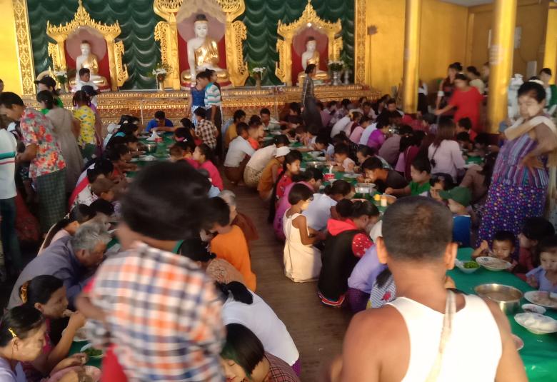 ဘုရားဖူးလာပြည်သူအပေါင်းအား နှောင်းတန်ခူးလပြည့်နေ့ နေ့ထူးနေ့မြတ်တွင် အလှူရှင် ဦးဇော်ဖေ+ဒေါ်ရွှေခင် မိသားစုမှ အာဟာရဒါနအဖြစ် မုန့်ဟင်းခါး ပိဿာချိန်(၃၀၀)ဖြင့် ဧည့်ခံကျွေးမွေးခဲ့ကြောင်း သိရသည်။