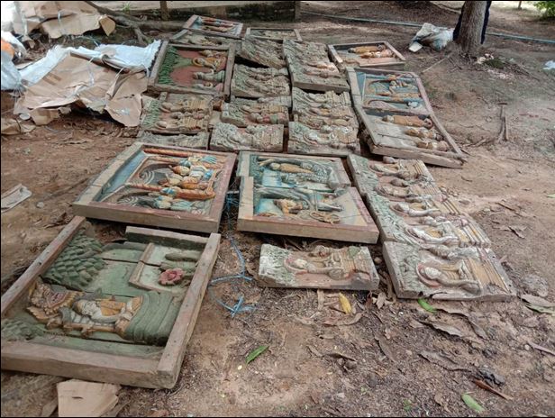 ကရင်ပြည်နယ်၊ မြဝတီမြို့နယ်၊ သင်္ဃန်းညီနောင်ကျေးရွာ၊ ကော့ကရိတ် - မြဝတီကားလမ်း ပူးပေါင်းစစ်ဆေးရေးဂိတ်၌  ဇွန်လ ၇ ရက်နေ့ မွန်းလွဲ ၁၂ နာရီ ၄၅ မိနစ်အချိန်က သင်္ဃန်းညီနောင် နယ်မြေရဲစခန်းမှ တပ်ဖွဲ့ဝင်များပါဝင်သည့် ပူးပေါင်းအဖွဲ့သည် မော်တော်ယာဉ်များအား စစ်ဆေးဆောင်ရွက်နေစဉ် ကော့ကရိတ်ဘက်မှ မြဝတီဘက်သို့ မျိုးနွယ်(၅၃)နှစ် မောင်းနှင်လာသော ယာဉ်အား ရပ်တန့်စစ်ဆေးရာ ပီနံအိတ်ဖြင့် ထုပ်ထားသည့် ရှေးဟောင်းပစ္စည်းဟု ယူဆရသော  ကျွန်း၊ ပျဉ်းမ၊ ပိန္နဲသားများဖြင့် ပြုလုပ်ထားသော ဗုဒ္ဓဝင်ပြခန်း ရုပ်ကြွများပါ ၁၀ ချပ်နှင့် ဗုဒ္ဓရုပ်ပွားတော် ရုပ်ကြွများပါ ၂၆ ချပ်တို့အား သိမ်းဆည်းရမိခဲ့ကြောင်း သိရသည်။