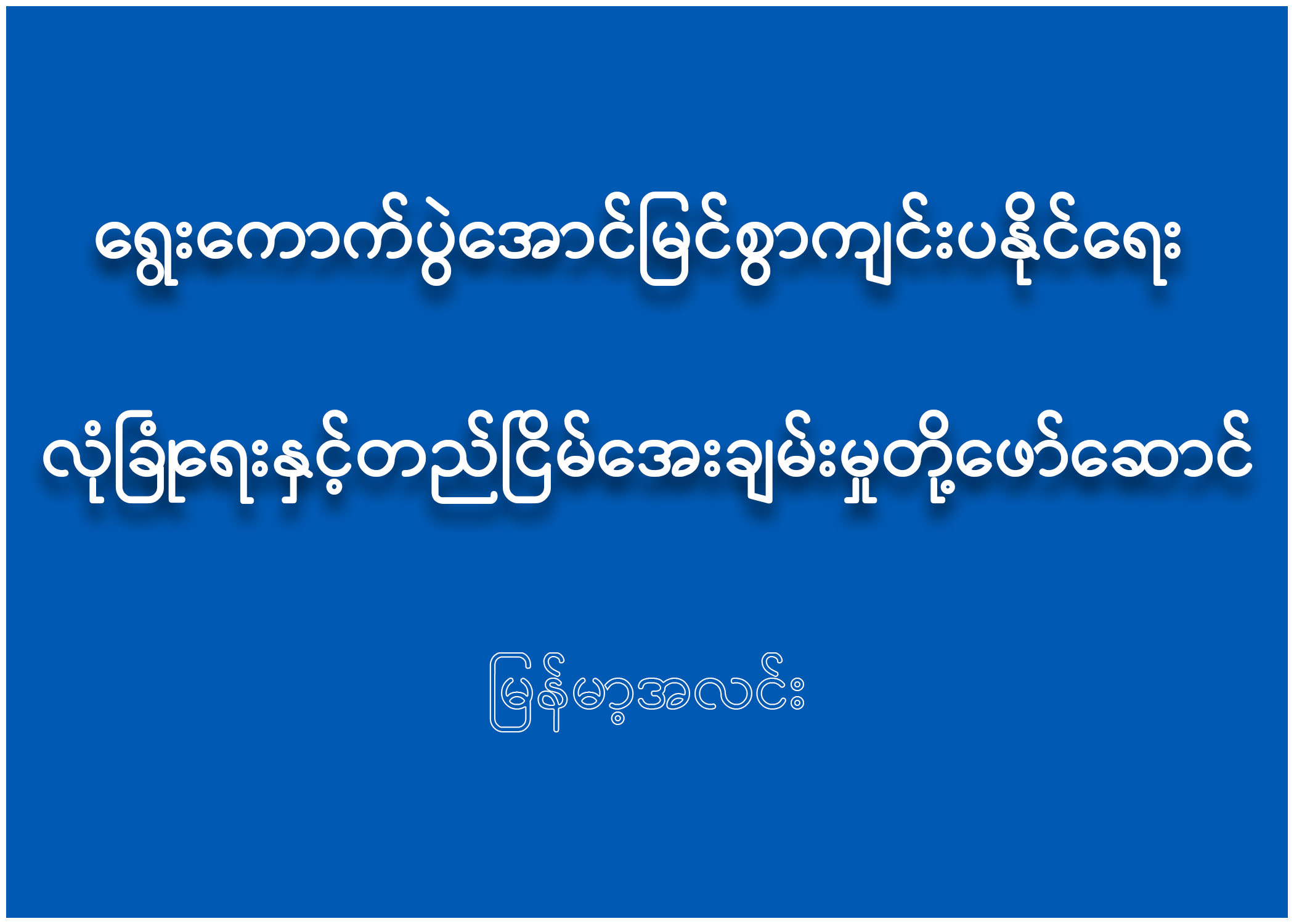 ပြည်ထောင်စုရွေးကောက်ပွဲကော်မရှင်သည် ပါတီစုံဒီမိုကရေစီ အထွေထွေရွေးကောက်ပွဲကြီးကို ဖွဲ့စည်းပုံ အခြေခံ ဥပဒေ (၂၀၀၈ ခုနှစ်) နှင့် ရွေးကောက်ပွဲဥပဒေများနှင့်အညီ ဒေသအလိုက် လုံခြုံရေး အခြေအနေပေါ်မူတည်ပြီး ကျင်းပပြုလုပ်ပေးသွားရန် စီမံဆောင်ရွက်လျက်ရှိသည်။ အဆိုပါ ရွေးကောက်ပွဲကျင်းပပြီး ပေါ်ပေါက်လာသည့် လွှတ်တော်တွင် တိုင်းရင်းသားများနှင့် လူထု လူတန်းစား အလွှာများကို ကိုယ်စားပြုသူများ ကျယ်ပြန့်စွာပါဝင်လာရေး၊ ဒေသနှင့် တိုင်းရင်းသားများအကျိုးကို တရားဥပဒေနှင့်အညီ ဆွေးနွေးနိုင်ရေးအတွက် တိုင်းရင်းသားကိုယ်စားလှယ်များ နိုင်ငံရေးစင်မြင့်တွင် ပိုမိုပါဝင်လာနိုင်စေရန် ရွေးကောက်ပွဲတွင် မဲများသူအနိုင်ရသည့်စနစ် (First Past The Post) FPTP စနစ်အပြင် မြန်မာ နိုင်ငံနှင့် သင့်လျော်ပြီး ရိုးရှင်းလွယ်ကူသည့် စာရင်းပိတ်အချိုးကျ ကိုယ်စားပြုစနစ် (Closed List – PR) ကို ပေါင်းစပ်ကျင့်သုံး သွားမည်ဖြစ်သည်။