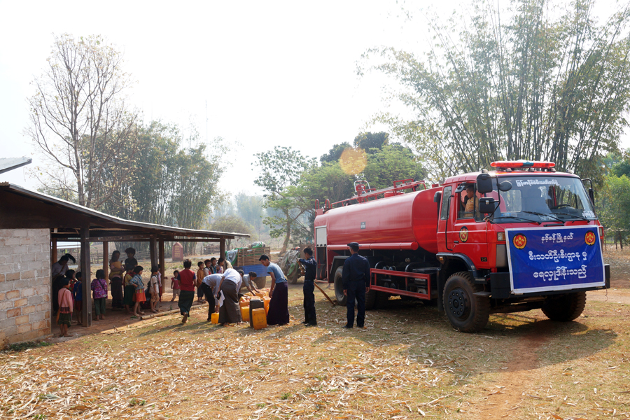 ပူပြင်းခြောက်သွေ့သောကာလအတွင်း သောက်သုံးရေရှားပါးလျှက်ရှိသော ကျေးရွာများကို ရှမ်းပြည်နယ်တောင်ပိုင်း နမ့်စန်မြို့နယ်မီးသတ်ဦးစီးဌာနအနေဖြင့် သောက်သုံးရေများ သွားရောက်လှူဒါန်း ပေးလျှက်ရှိရာ ဧပြီလ ၆ ရက် နံနက်၈နာရီခွဲက ဟိုက်ဖတ်ကျေးရွာအုပ်စု နမ့်ကြုတ်ကျေးရွာ သို့ သွားရောက်၍ လှူဒါန်းပေးခဲ့ကြောင်း သိရသည်။