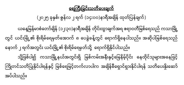 မိုးလေဝသနှင့်ဇလဗေဒညွှန်ကြားမှုဦးစီးဌာနမှ ၂-၆-၂၀၂၅ ရက်နေ့တွင် ရေကြီးခြင်းသတိပေးချက်ကို ထုတ်ပြန်ထားပါတယ်…