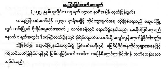 Jul 17,2025 |02:17 | ၁၇-၇-၂၀၂၅ မိုးလေဝသနှင့်ဇလဗေဒညွှန်ကြားမှုဦးစီးဌာနမှ ၁၇-၇-၂၀၂၅ ရက်နေ့တွင် ထုတ်ပြန်သည့် ရေကြီးခြင်းသတိပေးချက်ကို ထုတ်ပြန်ထားပါတယ်... Crd> မိုး/ဇလ