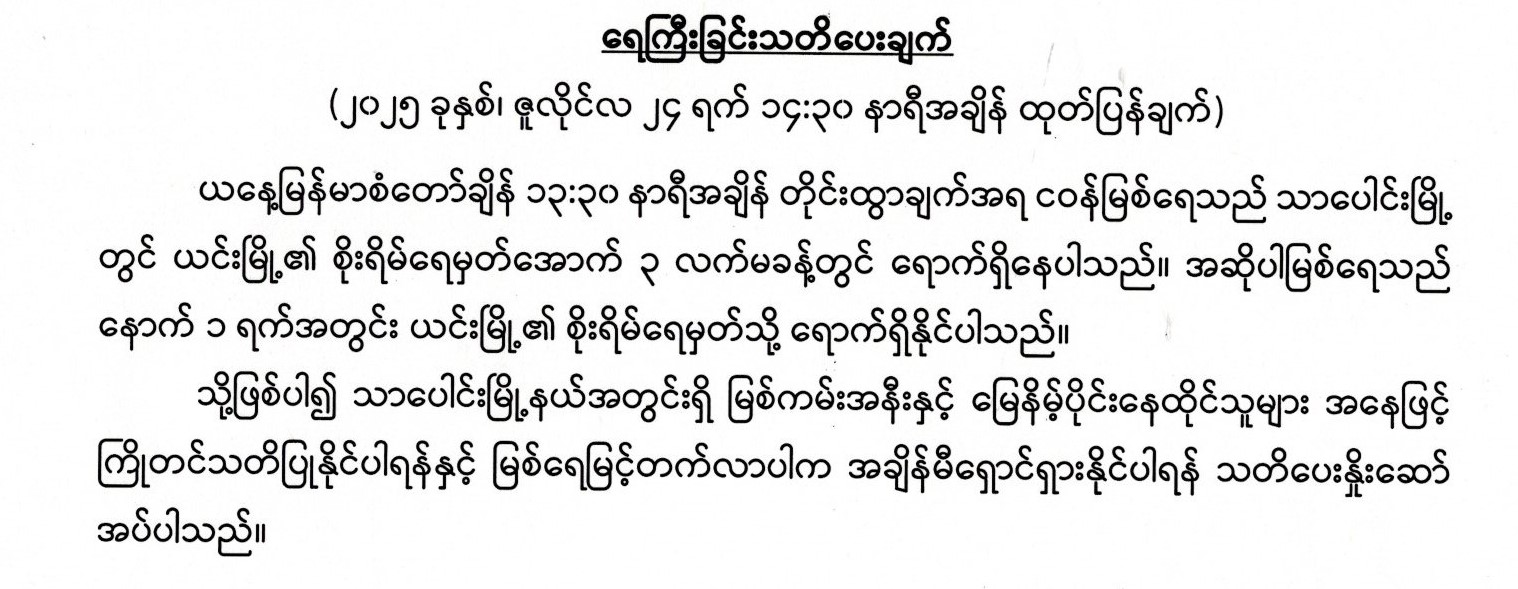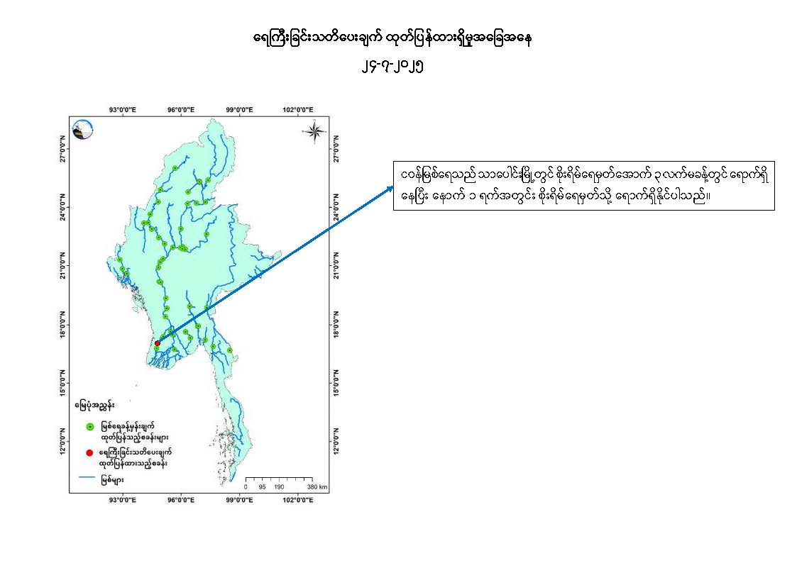 မိုးလေဝသနှင့်ဇလဗေဒညွှန်ကြားမှုဦးစီးဌာနမှ ၂၄-၇-၂၀၂၅ ရက်နေ့ ၁၄:၃၀ နာရီအချိန်တွင် ထုတ်ပြန်သည့် ရေကြီးခြင်းသတိပေးချက်သတင်းကို ထုတ်ပြန်ထားပါတယ်...