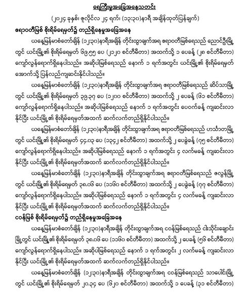 Jul 24,2024 |03:07 | ၂၄-၇-၂၀၂၄ မိုးလေဝသနှင့်ဇလဗေဒညွန်ကြားမှုဦးစီးဌာနမှ ၂၄-၇-၂၀၂၄ ရက်နေ့တွင် ရေကြီးမှုအခြေအနေသတင်းကို ထုတ်ပြန်ထားပါတယ်… Crd> မိုး/ဇလ