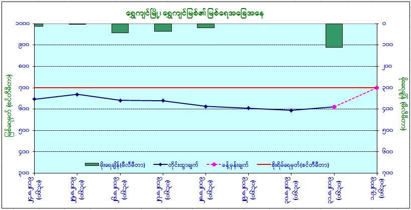 ယနေ့မြန်မာစံတော်ချိန် ၉ နာရီခွဲအချိန် တိုင်းထွာချက်အရ ရွှေကျင်မြစ်ရေသည် ရွှေကျင်မြို့ တွင် ယင်းမြို့၏ စိုးရိမ်ရေမှတ်အောက် (၁)ပေခွဲခန့်တွင် ရောက်ရှိနေပြီး အဆိုပါမြစ်ရေသည် နောက် (၁)ရက်အတွင်း ယင်းမြို့၏ စိုးရိမ်ရေမှတ်သို့ ရောက်ရှိနိုင်ကြောင်း မိုးဇလမှ ထုတ်ပြန်ထားသည်။
