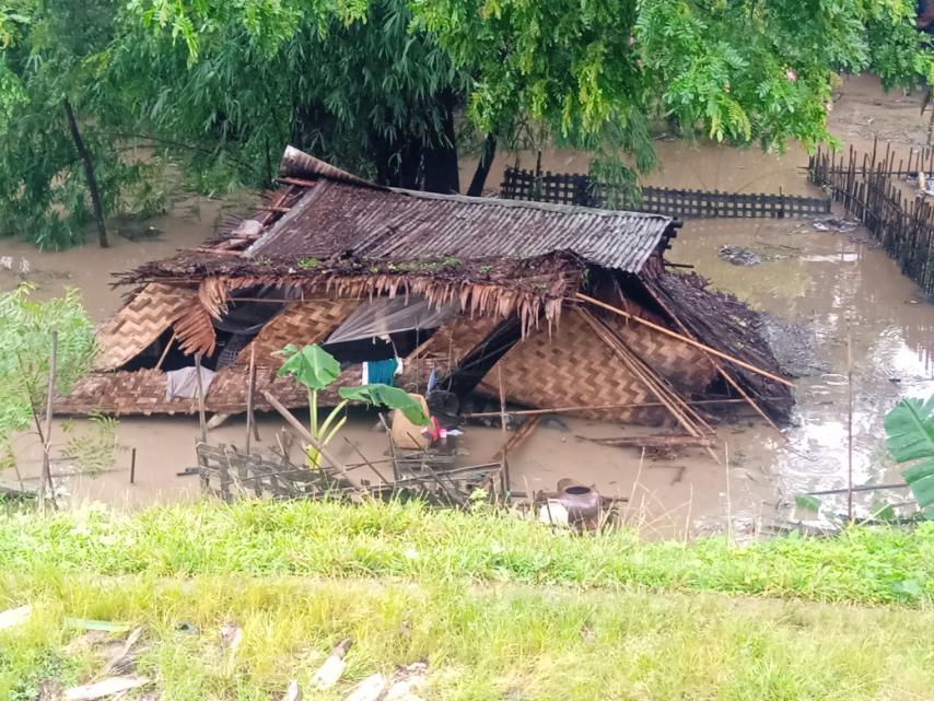 မိုးသည်းထန်စွာရွာသွန်းပြီး  လေပြင်းတိုက်ခတ်မှုကြောင့် ပြိုကျပျက်စီးသည့် နေအိမ် ၄ လုံး၊ အမိုးလန် ပျက်စီးသည့် နေအိမ် ၄ လုံး စုစုပေါင်း နေအိမ် ၈ လုံး ပျက်စီးခဲ့ပြီး အဆိုပါ အိမ်ထောင်စုများကို ၎င်းတို့၏ မိသားစု ဆွေမျိုးများ၏ နေအိမ်များတွင် ယာယီပြောင်းရွှေ့နေထိုင်စေလျက်ရှိကြောင်းနှင့် လူနှင့် တိရစ္ဆာန် ထိခိုက်မှုမရှိကြောင်း သိရသည်။