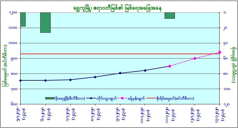 ယနေ့မြန်မာစံတော်ချိန် (၁၂:၃၀)နာရီအချိန် တိုင်းထွာချက်အရ ဧရာဝတီမြစ်ရေသည် ရွှေကူမြို့ တွင် ယင်းမြို့၏ စိုးရိမ်ရေမှတ်အောက် (၂)ပေခွဲခန့်တွင် ရောက်ရှိနေပါသည်။ အဆိုပါမြစ်ရေသည် နောက်(၂)ရက်အတွင်း ယင်းမြို့၏ စိုးရိမ်ရေမှတ်အထက်သို့ ကျော်လွန်ရောက်ရှိနိုင်ပါသည်။