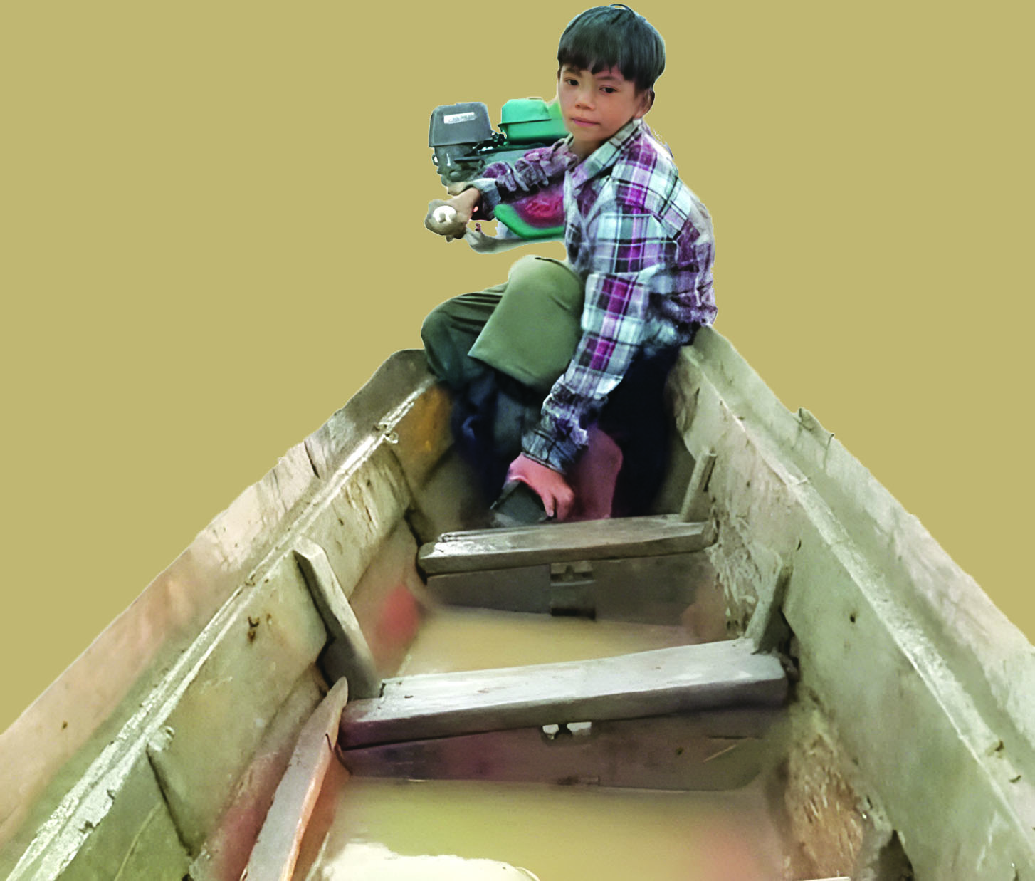 နေလောင်မှုကြောင့် ဆံပင်တွေ နီကြင်ကြင်ဖြစ် နေတဲ့ ၁၂ နှစ်သားလေးရဲ့ မျက်နှာပေါ်က မျက်လုံးနဲ့ နှာခေါင်းနား တစ်ဝိုက်ဒဏ်ရာအချို့ကို မြင်တွေ့ရပါတယ်။ “လှေမောင်းရင်း ဘာနဲ့ငြိမိလဲတော့မသိဘူး။ ညဘက်တွေလည်း သွားကယ်ရတာဆိုတော့ ဒဏ်ရာတွေကို သတိမထားမိဘူး၊ အားလုံးပြီးတော့မှ တအားနာမှန်းသိတယ်။ အခုတော့ လှေကပေါက်သွားပြီး စက်ကနှိုးရခက်နေတယ်” လို့ ပေါများကပြောပြပါတယ်။ “သားခွေးလေးတွေကလိမ္မာတယ်၊ ဟင်းမစား တတ်ဘူး၊ ထမင်းအဖြူပဲကြိုက်တာ” လို့ စိတ်လိုလက်ရ ပြောပြပါသေးတယ်။