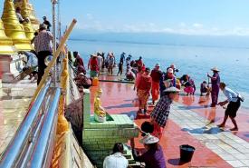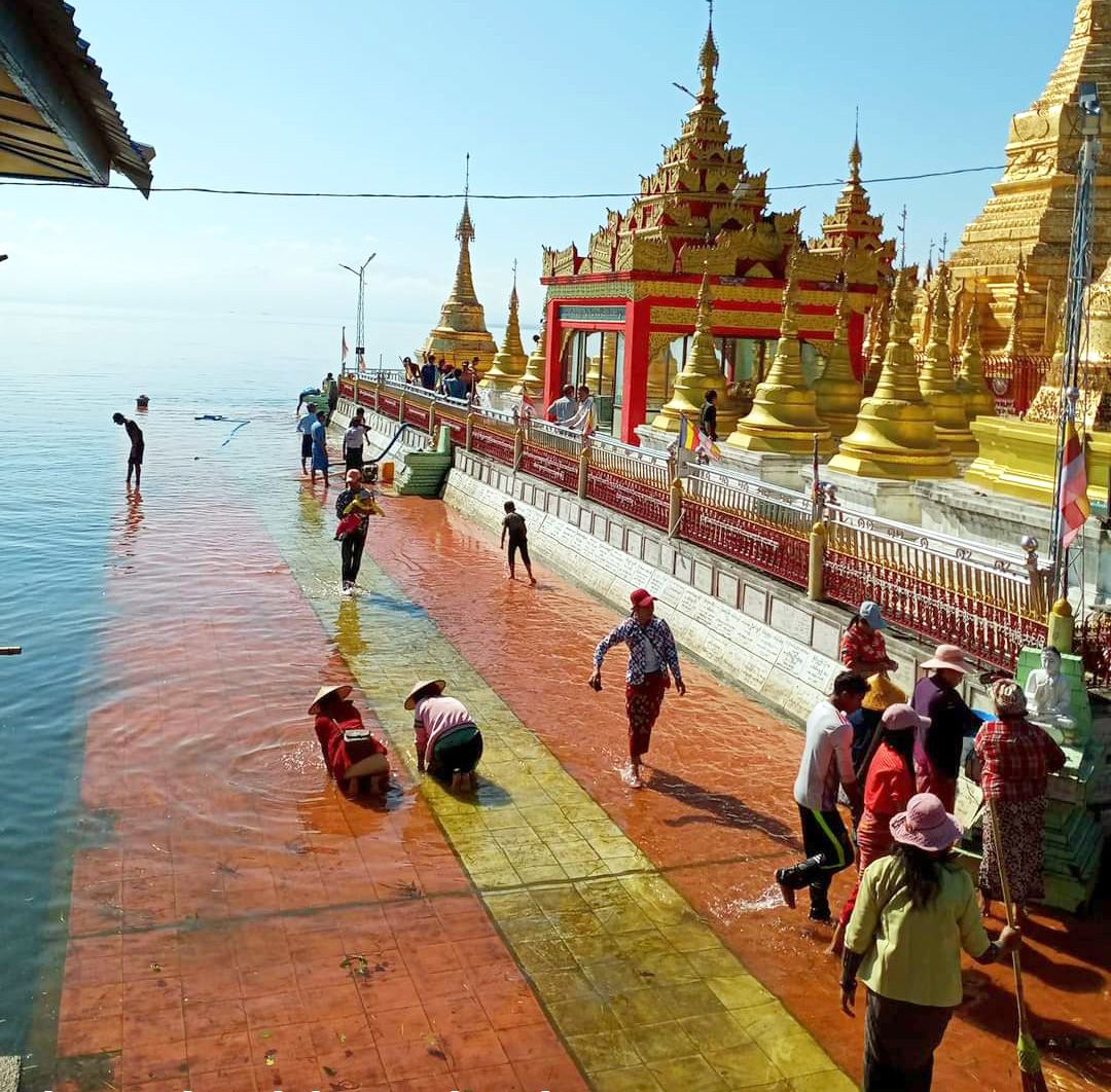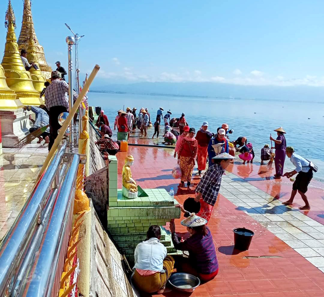 ရွာသူရွာသားများနှင့် အနယ်အနယ်အရပ်ရပ်မှ ဘုရားဖူး ပြည်သူများသည် ဘုရားရင်ပြင်ပေါ်မှ အင်းရေများ ကျဆင်းလာသဖြင့် ရေညှိ ရေမှော်ပင် ဒိုက်များတင်ကျန်နေသည့် အမှိုက်တရိုက်များကို ရှင်းလင်းခြင်း၊ ဗုဒ္ဓရုပ်ပွားတော်မြတ်နှင့် ဘုရားစေတီပုထိုးတော်များအား ရေသပ္ပါယ်ခြင်း၊ ပန်း၊ ဆီမီး၊ ရေချမ်းများ လဲလှယ်ကပ်လှူပူဇော်ခြင်းတို့ကို တပျော်တပါး စုပေါင်းသန့်ရှင်းရေး လုပ်အားဒါနကုသိုလ် ပြုခဲ့ကြကြောင်း သိရသည်။