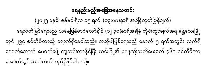 မိုးလေဝသနှင့်ဇလဗေဒညွှန်ကြားမှုဦးစီးဌာနမှ (၁၅-၁-၂၀၂၅) ရက်နေ့တွင် ရေနည်းမည့်အခြေအနေသတင်းကို ထုတ်ပြန်ထားပါတယ်…