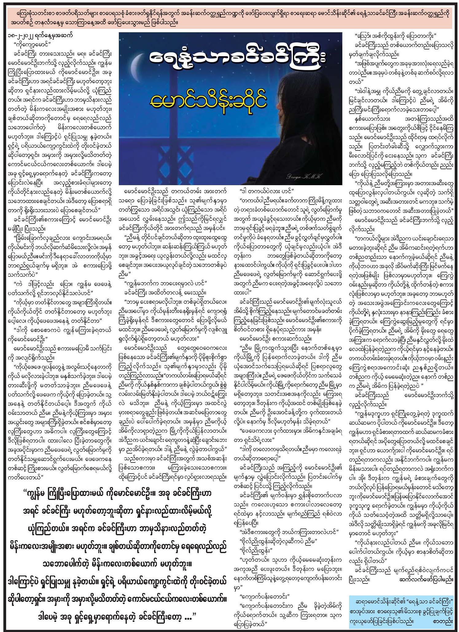 ပြည်ထောင်စုသမ္မတမြန်မာနိုင်ငံတော် ယာယီသမ္မတ နိုင်ငံတော်လုံခြုံရေးနှင့် အေးချမ်းသာယာရေးကော်မရှင်ဥက္ကဋ္ဌ ဗိုလ်ချုပ်မှူးကြီး သတိုးမဟာသရေစည်သူ သတိုးသီရိသုဓမ္မ မင်းအောင်လှိုင်ထံမှ (၇၈) နှစ်မြောက် ကချင်ပြည်နယ်နေ့ အခမ်းအနားသို့ ပေးပို့သည့် သဝဏ်လွှာ
