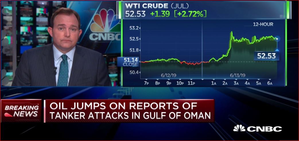 အိုမန် ပင်လယ်ကွေ့အတွင်း ရေနံတင်သင်္ဘောများ တိုက်ခိုက်ခံရပြီးနောက် နယူးယောက်တွင် ရေနံစိမ်းဈေးနှုန်းများ မြင့်တက်လာခဲ့သည်။