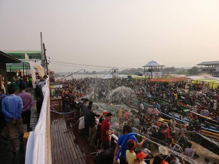 ရေပေါ်သင်္ကြန် ကျင်းပလျက်ရှိသည့် အင်းလေးရေပြင်သို့ ပြည်တွင်းပြည်ပ ခရီးသွားဧည့်သည်များ များပြားစွာ လာရောက်လည်ပတ်လျက် ရေကစားခြင်းတို့ဖြင့် စည်ကားနေ