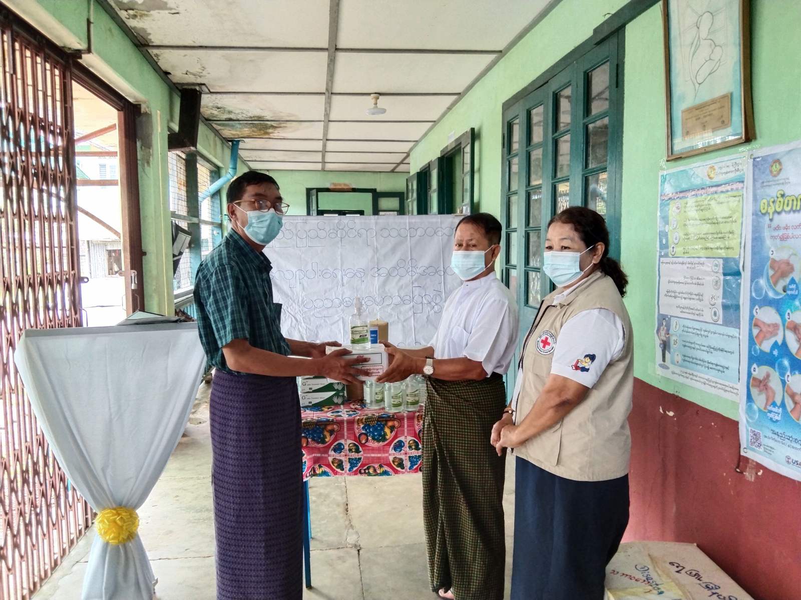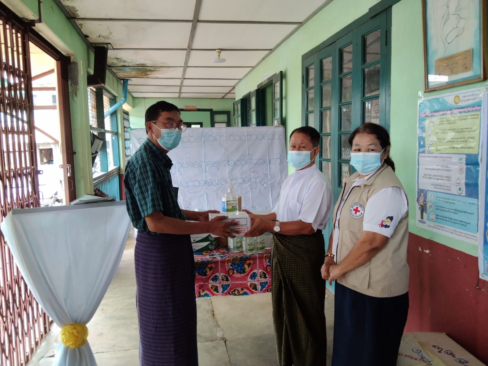 ထိုသို့ပေးအပ်ရာတွင် ရေဖြူမြို့နယ် ကျန်းမာရေးဦးစီးဌာနမှူး ဒေါက်တာကျော်မိုးမြင့်က လက်သန့်ဆေးရည် (၁၀)ဘူး၊ Mask (၁၀)ထုတ်၊ အရက်ပျံ (၅)ဘူး၊ လက်အိတ် (၅)ဘူး၊ ဂွမ်းလိပ်အကြီး (၅)ခု၊ ဓာတ်ဆားထုတ် (၃)ဖာ တို့ကိုပေးအပ်ရာ ရေဖြူမြို့နယ် ကြက်ခြေနီအသင်းခွဲဥက္ကဋ္ဌ ဦးခင်မောင်မြင့်နှင့် ရေဖြူမြို့နယ် ကြက်ခြေနီ သူနာပြုတပ်ဖွဲ့၊ မြို့နယ်တပ်ဖွဲ့မှူး ဒေါ်သီတာတင်တို့မှ လက်ခံရယူခဲ့ကြောင်း သိရသည်။