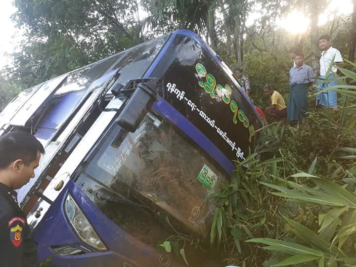 အဆိုပါ ယာဉ်တိမ်းမှောက်မှုကြောင့် ယာဉ်မောင်း ဦးမျိုးမင်းလှိုင်(၄၆ နှစ်)နှင့် ယာဉ်နောက်လိုက် ဦးဘုန်းမြင့်မောင်တို့ သေဆုံးကာ ယာဉ်ပေါ်ပါခရီးသည်(၁၄)ဦးအနက် အမျိုးသား(၆)ဦး၊ အမျိုးသမီး (၆)ဦး (မစိုးရိမ်ရ) ဒဏ်ရာရရှိခဲ့သည်။