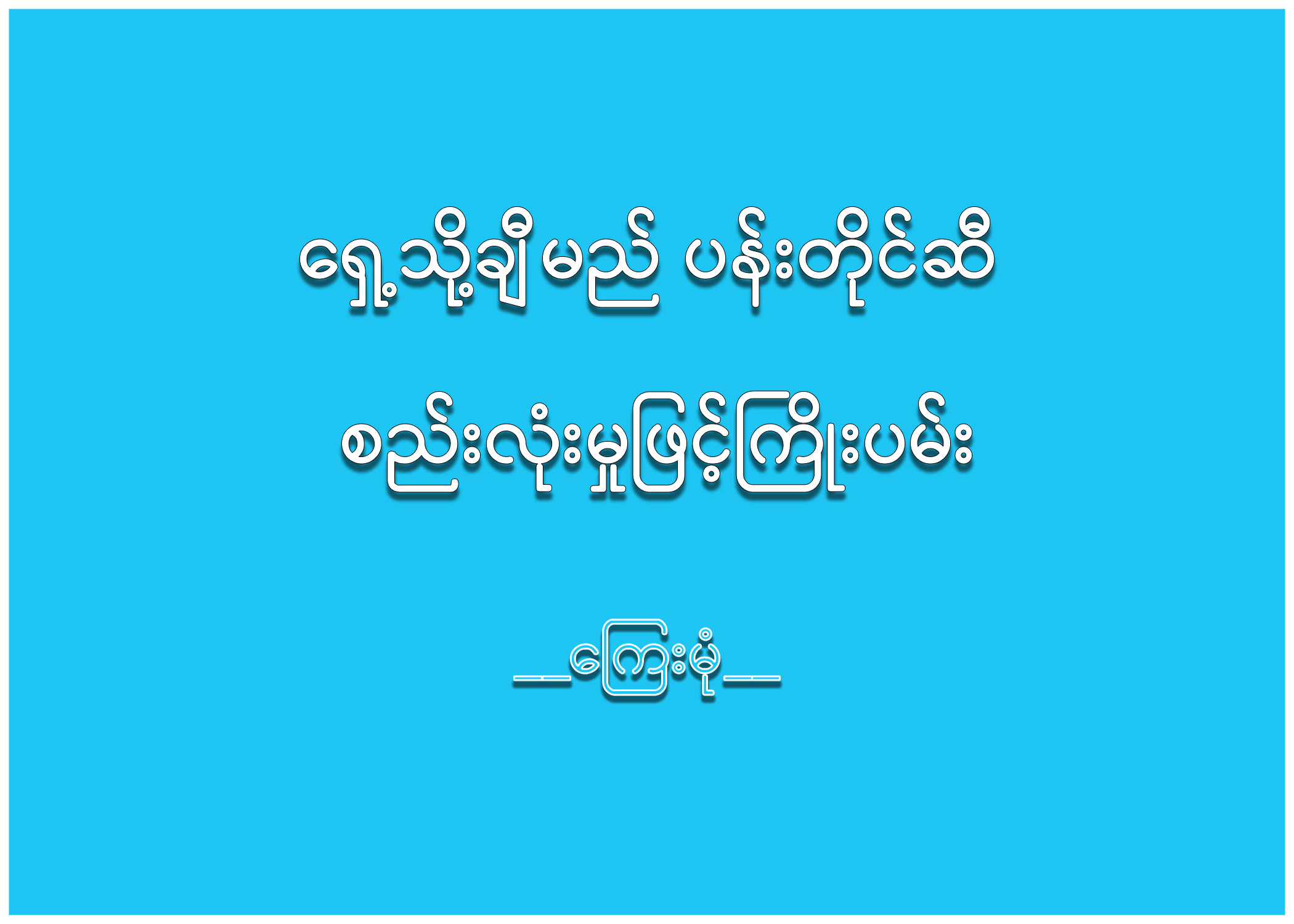 သို့ဖြစ်ရာ နိုင်ငံတော်၏ “ရှေ့သို့ချီမည် ပန်းတိုင်ဆီ” ဆောင်ပုဒ်နှင့်အညီ နိုင်ငံ့အကျိုး၊ တိုင်းရင်းသားပြည်သူ တစ်ရပ်လုံးအကျိုးကိုရှေးရှုပြီး ပိုမိုကောင်းမွန်သော နိုင်ငံတော်နှင့်လူမှုစီးပွားဘဝများကို ကြိုးပမ်းတည်ဆောက် သွားမည်ဖြစ်ရာ ပြည်ထောင်စုကြီးတစ်ခုလုံး ဘက်စုံထောင့်စုံဟန်ချက်ညီညီ ဖွံ့ဖြိုးတိုးတက်ရေးအတွက် ပြည်သူတစ်ရပ်လုံး၏ စုပေါင်းအားဖြင့် ပါဝင်ဆောင်ရွက်ကြပါရန် တိုက်တွန်း အပ်ပါကြောင်း။