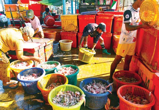 ရန်ကုန်မြို့တွင် ပင်လယ်ငါးဖမ်းစက်လှေများ ဆိုက်ကပ်ရာ ဆိပ်ခံတံတား ၁၀ ခု ကျော်ရှိပြီး ယခုရက်ပိုင်းအတွင်း မြန်မာ့ပင်လယ်ပြင်မှ ပြည်ပသို့တင်ပို့သည့် ငါးနှပ်၊ ငါးတံခွန်၊ ငါးပုတ်သင်နှင့် ပုစွန်များ အဆက်မပြတ် ဝင်ရောက်လျက်ရှိသည့်အတွက် နှစ်သစ်ကူးကာလ၌ ပင်လယ်ရေထွက်ကုန်များ အရောင်းအဝယ်ကောင်းလျက်ရှိသည့်အပြင် ပြည်ပဝယ်လိုအားကောင်းသည့် ငါးသလောက်နှင့် ကင်းမွန်များ ရန်ကုန်ဈေးကွက်သို့ ယခုလအတွင်း လှိုင်လှိုင်ဝင်ရောက်လာနိုင်ကြောင်း ငါးလုပ်ငန်းရှင်များက ခန့်မှန်းထားသည်။