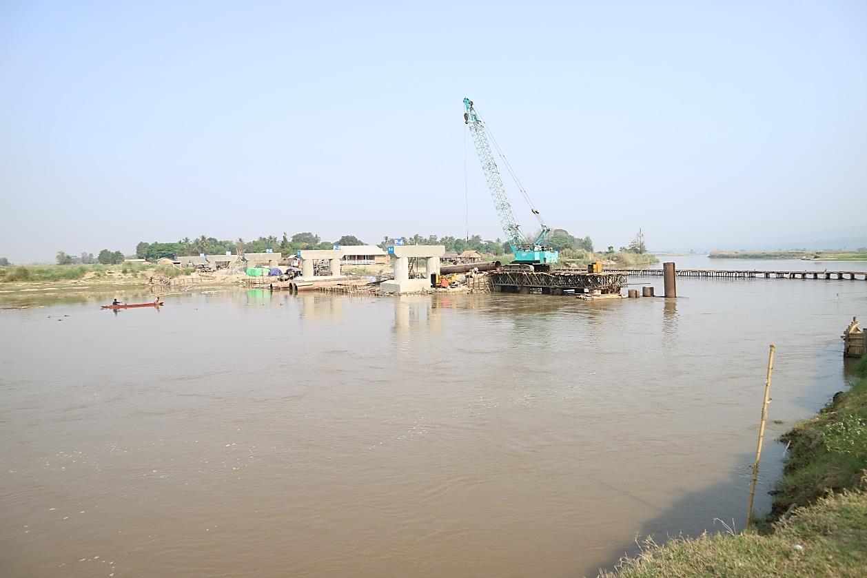 “မြစ်အတွင်း ရေလည်မှာ တိုင် ၄ တိုင်စိုက်တာ အခုလုပ်ငန်းစတင်နေတဲ့ p5 ကနောက်ဆုံးတိုင်ပဲ ကျန်တာတိုင်တွေကတော့ ကုန်းပေါ်မှာပါတယ် ပြည်ထောင်စု ဖြည့်စွက်ရန်ပုံငွေ ကျပ်သန်း ၃၅၀ ရရင် မိုးမကျခင် တံတားအောက်ထည်ပိုင်းတွေအားလုံးပြီးစီး သွားမယ် ဒါအပြင် အပေါ်က တံတားအခန်းတစ်ခန်းကို သံဘောင်ယက်မကြီးတွေတင်ပြီးသားဖြစ်သွား မယ်” ဟု တာဝန်ခံ ဦးစီးအရာရှိ ဦးလှိုင်ဖြိုးဝင်းက ပြောကြားသည်။